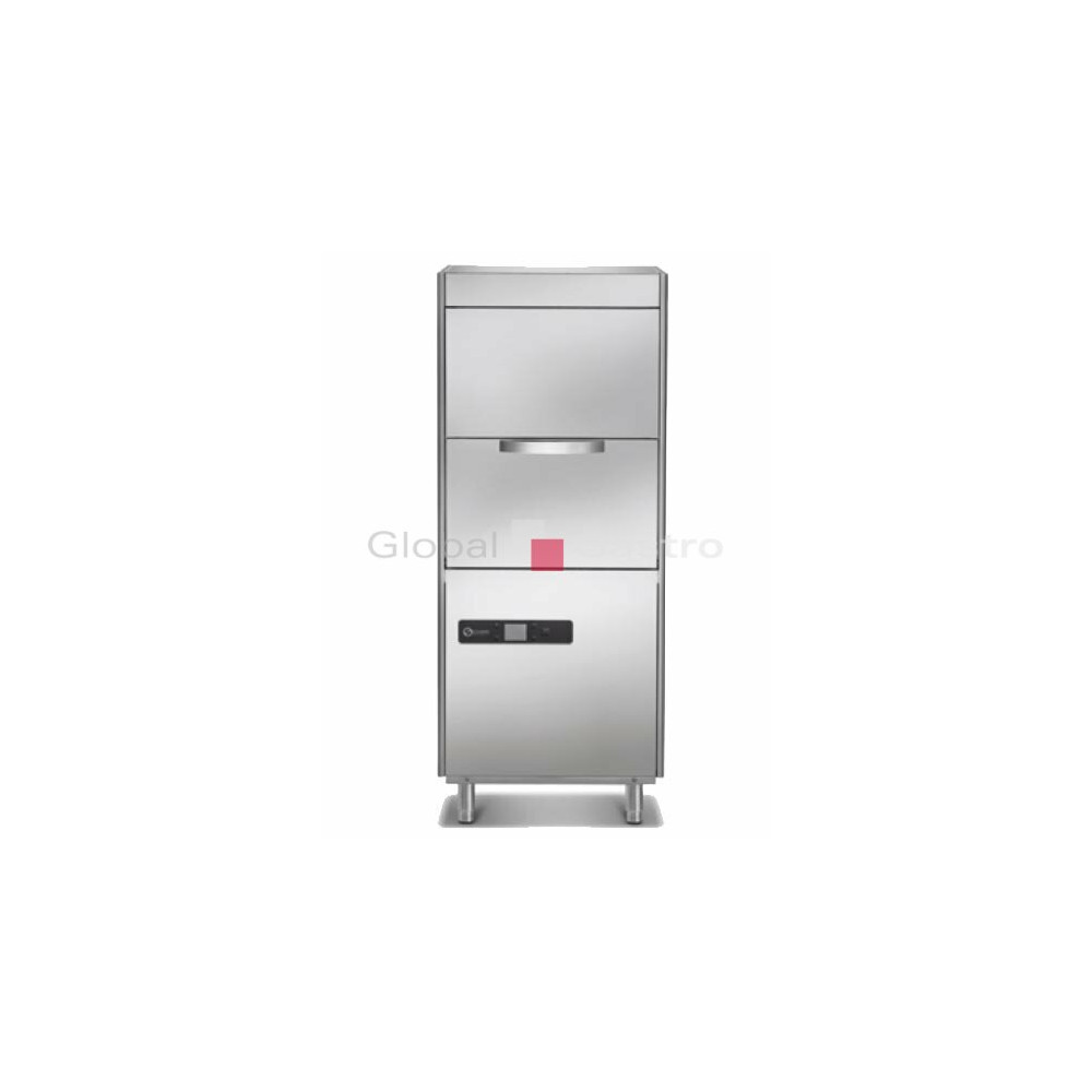Automatická dvouplášťová myčka kuchyňského (černého) nádobí VS P57-62N-D s čelním plněním v celonerezovém provedení. Speciální konstrukce mycích ramen proti zanášení (snadno demontovatelná pro čištění). Lisovaná vana s dvojitými filtry a oblými rohy pro hygienu a snadnou údržbu. Dvouplášťové provedení výrazně snižuje hladinu hluku a tepelné ztráty (náklady na energie, lepší pracovní prostředí). Velký zakládací koš (570 x 620 mm) a úložná výška až 620 mm (využitelný výška 595mm) umožňuje podnosy, gastronádoby, pekařské plechy a přepravky (600 x 400 mm), případně talíře a příbory. Vysoce účinné mycí čerpadlo zajišťuje dostatečný výkon pro mycí a oplachová rotační ramena. Bezproblémový chod stroje zajišťuje snadné elektronické ovládání s LCD displejem EVO2 s funkcí automatického startu při uzavření zákrytu. Čtyři přednastavené mycí cykly pro různé typy nádobí. Dvě úrovně menu: ovládací a technické (chráněné kódem PIN - servis). Počítadlo denního a celkového počtu cyklů. Základní výbava myčky: 1x koš 570 x 620 mm univerzál na kuchyňské nádobí, 1x stojan na plechy, 1x košíček na příbory.