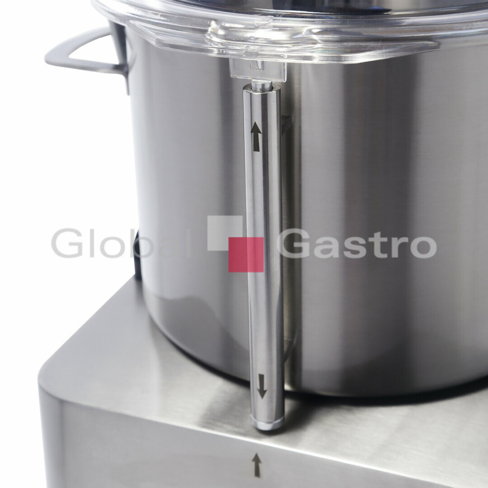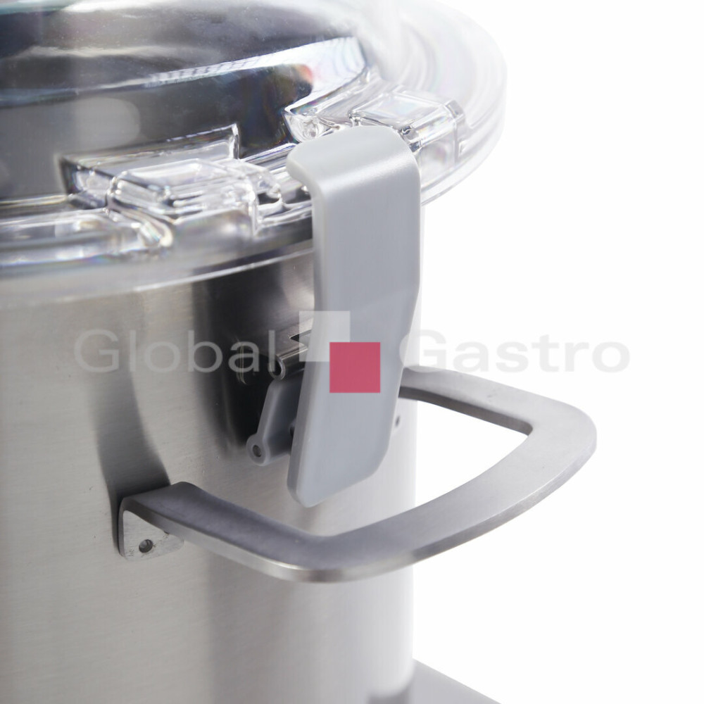 Odnímatelná nádoba na přípravu potravin má celkový objem 12 l. Plastový kryt chrání před možným vystříknutím obsahu, snižuje provozní hluk a zaručuje vám dokonalou kontrolu. Pro optimální pohled do nádoby je ve víku integrován stěrač. Plnicí otvor ve víku slouží k dodatečnému přidávání přísad během sekání. Boční rukojeti na nádobě zaručují bezpečnou a pohodlnou přepravu
