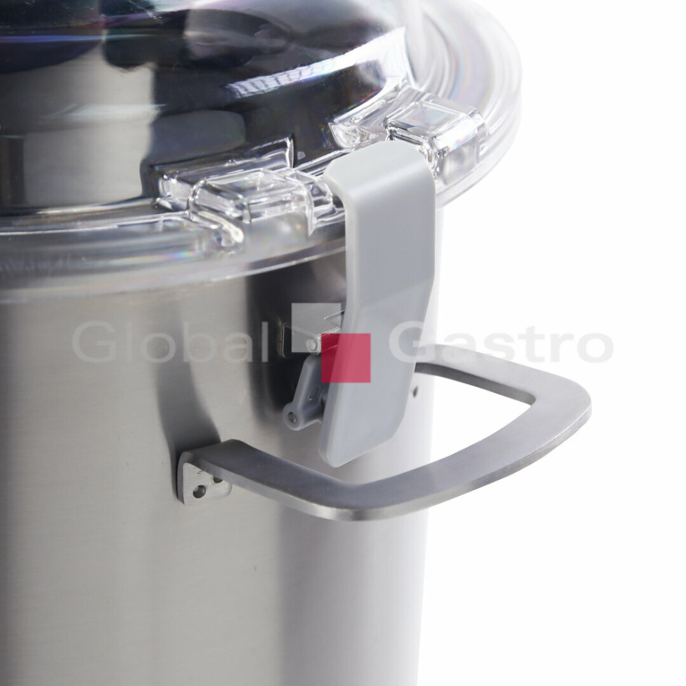 Odnímatelná nádoba na přípravu potravin má celkový objem 18 l. Plastový kryt chrání před možným vystříknutím obsahu, snižuje provozní hluk a zaručuje vám dokonalou kontrolu. Pro optimální pohled do nádoby je ve víku integrován stěrač. Plnicí otvor ve víku slouží k dodatečnému přidávání přísad během sekání. Boční rukojeti na nádobě zaručují bezpečnou a pohodlnou přepravu.