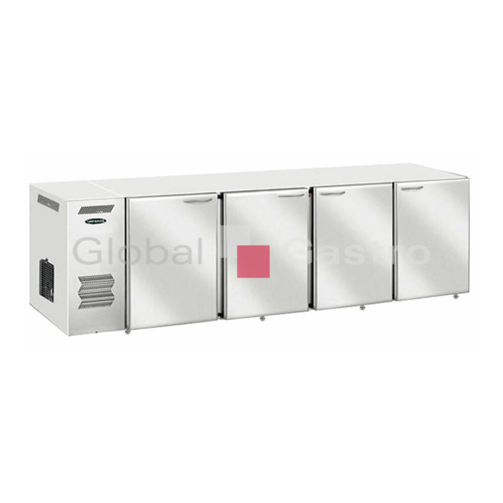 Barový chladící stůl BSX (linie 700) - v celonerezovém provedení s vestavěným agregátem (standardně vlevo), dvířky a bez vrchní prac.desky. Všechny modely je možno osadit zásuvkovými sety na nápoje "X2Z" (2x hluboké zásuvky), nebo sestavou "X3Z” (3x zásuvky h=210mm), případně prosklenými dvířky a zámky dveří, umísti agregát vpravo, případně nad něj umístit neutrální zásvku (pro odpad z kávovaru). Barové stoly je možno dále příplatkově osadit vrchní deskou v různém provedení a hloubce :"TOP" hladká bez zadního lemu (popř. s lemem), "TOP/D" s dřezem nad agregátem bez lemu (popř.s lemem).