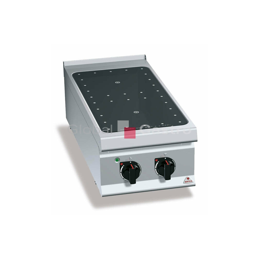 Keramická varná deska tloušťka 6 mm. Elektrická topná tělesa o Ø270 mm a výkonu 4kW dosahují při vaření v kruhových zónách vysokých teplot (do 500°C). Plochy zón jsou označeny speciálním serigrafem, dle kterého je určena správná poloha hrnce. Světelná signalizace zbytkového tepla do 60°C při vypnutí každé zóny pro ochranu uživatele.