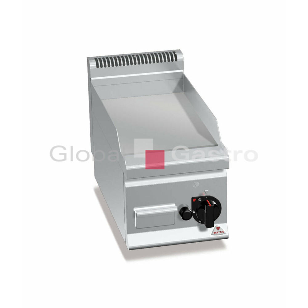 Termostatický ventil 30 až 300°C pro přesnou a bezpečnou regulaci. Termočlánek a chráněný zápalný plamínek. Deska hladká s vrstvou tvrdého chromu jež usnadňuje čistění, zvýšené postranní lemy. Kompletní sortiment plynových a elektrických ploten s různým provedením grilovací plochy. Lze na nich připravovat pokrmy tzv. "kontaktem" a to nejcitlivějším způsobem. Jenotný systém distribuce tepla zaručuje rovnoměrné grilování po celé pracovní ploše. Při grilování se přirozeně tvoří zbytkový olej, který je odváděn a shromažďován ve velké odpadní nádobce.