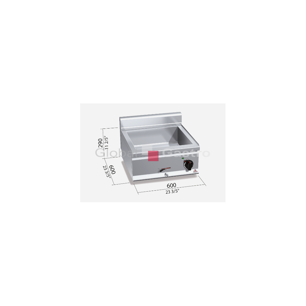 Nerezová vana pro GN s hloubkou 150 mm. Vypouštění kulovým kohoutem s tepelně odolným držadlem. Elektronická regulace výkonu. Kompaktní provedení s otevřeným podstavcem. Cena uvedena bez GN. Připojení lázně k 230V.