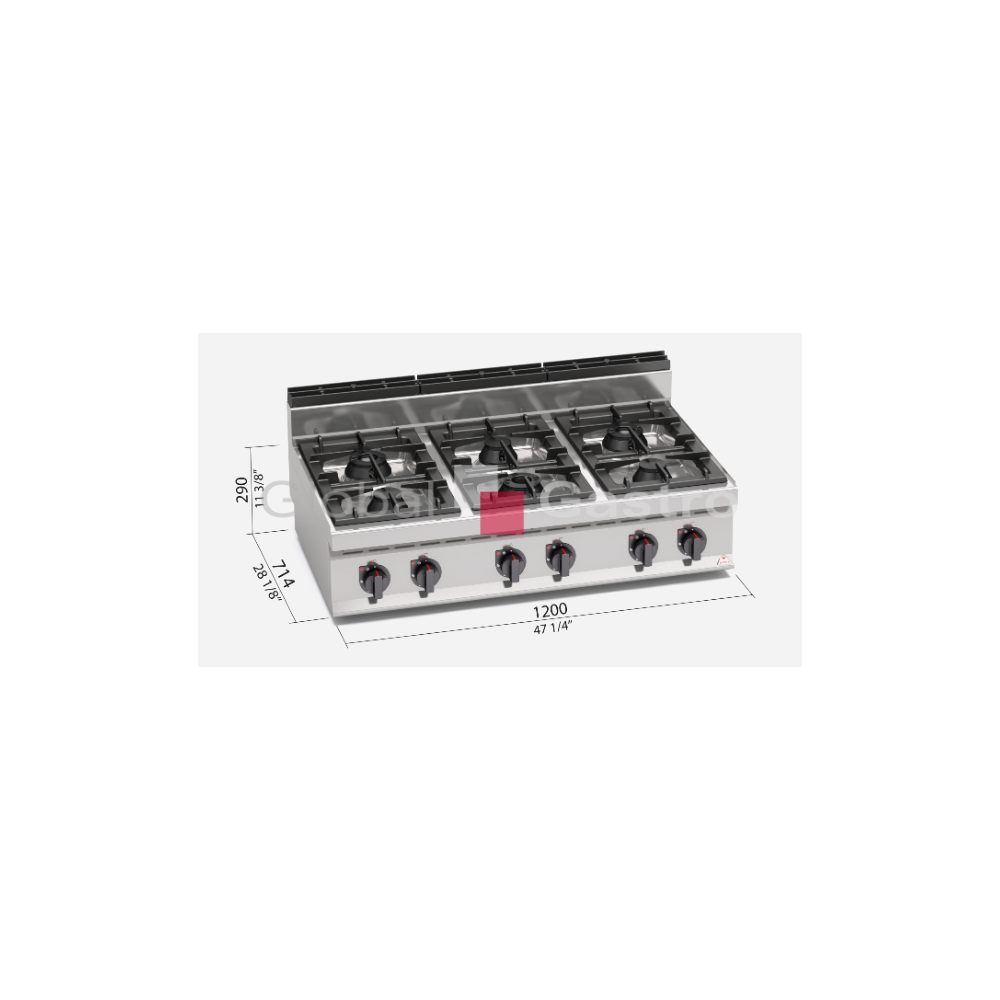 Příprava jídel přímo na plameni je u všech kuchařů nezbytná pro zdůraznění tradičních kulinářských dovedností. Tvar litinových roštů tvoří optimální pracovní plochu pro snadnou manipulaci s nádobím. Silné litinové hořáky 7 kW zaručují nadstandardní výkon a životnost. Vysoká energetická účinnost plynových hořáků umožňuje uspořit nejméně 30% plynu ročně v porovnání s tradičními hořáky. Odkapové vaničky pod hořáky mají zaoblené hrany, jsou kompletně odnímatelné. Vše je navrženo tak, aby byla snadná údržba a čištění. Pracovní plocha a opláštění z nerez oceli AISI 304. Výkonné litinové hořáky HIGH POWER, snadno demontovatelné a umístěné ve vyjímatelných prolisovaných smaltovaných (nerezových) odkapových vanách. Zapalování hořáků věčným plamínkem.