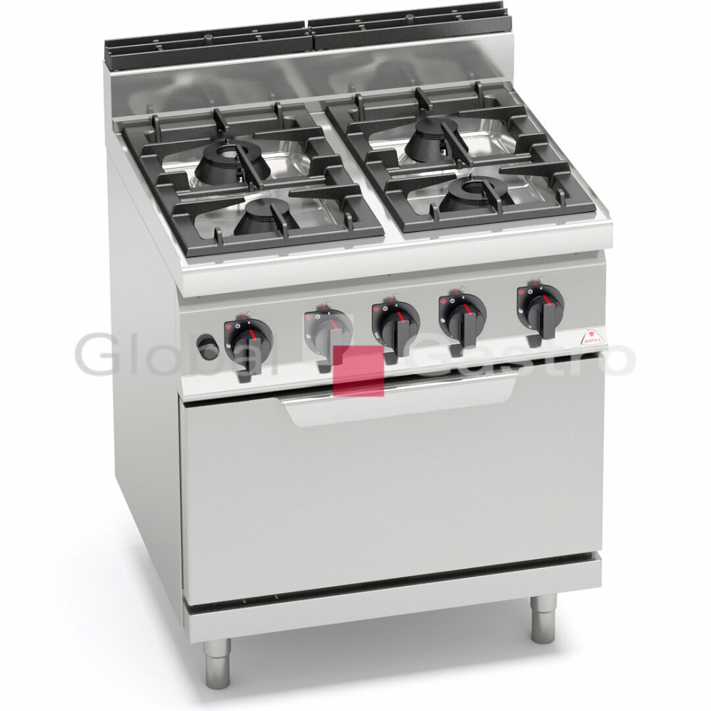 Příprava jídel přímo na plameni je u všech kuchařů nezbytná pro zdůraznění tradičních kulinářských dovedností. Tvar litinových roštů tvoří optimální pracovní plochu pro snadnou manipulaci s nádobím. Silné litinové hořáky 3,5 kW a 7 kW zaručují nadstandardní výkon a životnost. Vysoká energetická účinnost plynových hořáků umožňuje uspořit nejméně 30% plynu ročně v porovnání s tradičními hořáky. Odkapové vaničky pod hořáky mají zaoblené hrany, jsou kompletně odnímatelné. Vše je navrženo tak, aby byla snadná údržba a čištění. Pracovní plocha a opláštění z nerez oceli AISI 304. Výkonné litinové hořáky HIGH POWER, snadno demontovatelné a umístěné ve vyjímatelných prolisovaných smaltovaných (nerezových) odkapových vanách. Zapalování hořáků věčným plamínkem. Plynové trouby jsou vybaveny piezoelektrickým zapalováním a ovládány inovovanými ovladači s dvojitou konstrukcí prodlužující životnost.