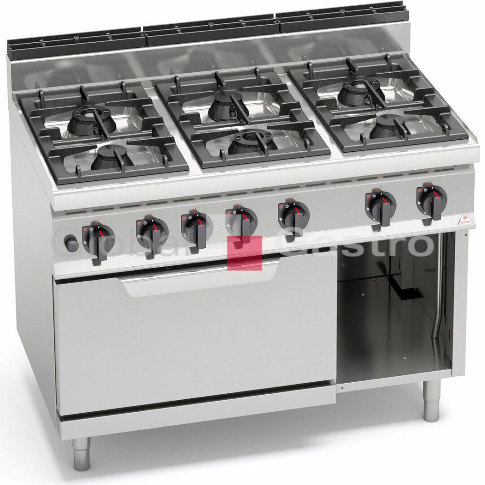 Příprava jídel přímo na plameni je u všech kuchařů nezbytná pro zdůraznění tradičních kulinářských dovedností. Tvar litinových roštů tvoří optimální pracovní plochu pro snadnou manipulaci s nádobím. Silné litinové hořáky 7 kW zaručují nadstandardní výkon a životnost. Vysoká energetická účinnost plynových hořáků umožňuje uspořit nejméně 30% plynu ročně v porovnání s tradičními hořáky. Odkapové vaničky pod hořáky mají zaoblené hrany, jsou kompletně odnímatelné. Vše je navrženo tak, aby byla snadná údržba a čištění. Pracovní plocha a opláštění z nerez oceli AISI 304. Výkonné litinové hořáky HIGH POWER, snadno demontovatelné a umístěné ve vyjímatelných prolisovaných smaltovaných (nerezových) odkapových vanách. Zapalování hořáků věčným plamínkem. Plynové trouby, pro 4x GN2/1, jsou vybaveny piezoelektrickým zapalováním a ovládány inovovanými ovladači s dvojitou konstrukcí prodlužující životnost.
