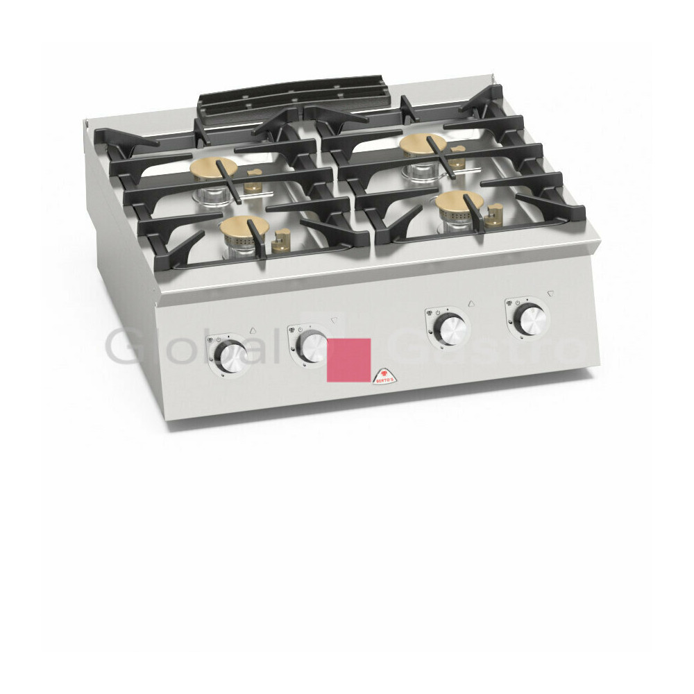 Nové výkonné sporáky linie HIGH POWER vyrobeny z odolné nerez oceli AISI 304. Profesionální poniklované litinové hořáky s vnitřním a vnějším hořením, snadno demontovatelné umístěny v prolisované nerezové vaně vybavené výpustí. Možnost napuštění vody kolem hořáků (snadné a rychlé čištění vypuštěním znečištěné vody). Hořáky s bezpečnostním termočlánkem, zapalovány věčným plamínkem. Pracovní plocha z nerez oceli AISI 304 tloušťka 2 mm (20/10), přední a boční panely z kvalitní nerezové oceli AISI 304. Litinové hořáky s mosazným víčkem, vybaveny pojistným termoventilem a ochranou pilotního hořáku. Úsporné, ale výkonné hořáky 5 kW jsou umístěny v prolisované hluboké vaně z nerezové oceli AISI 304.