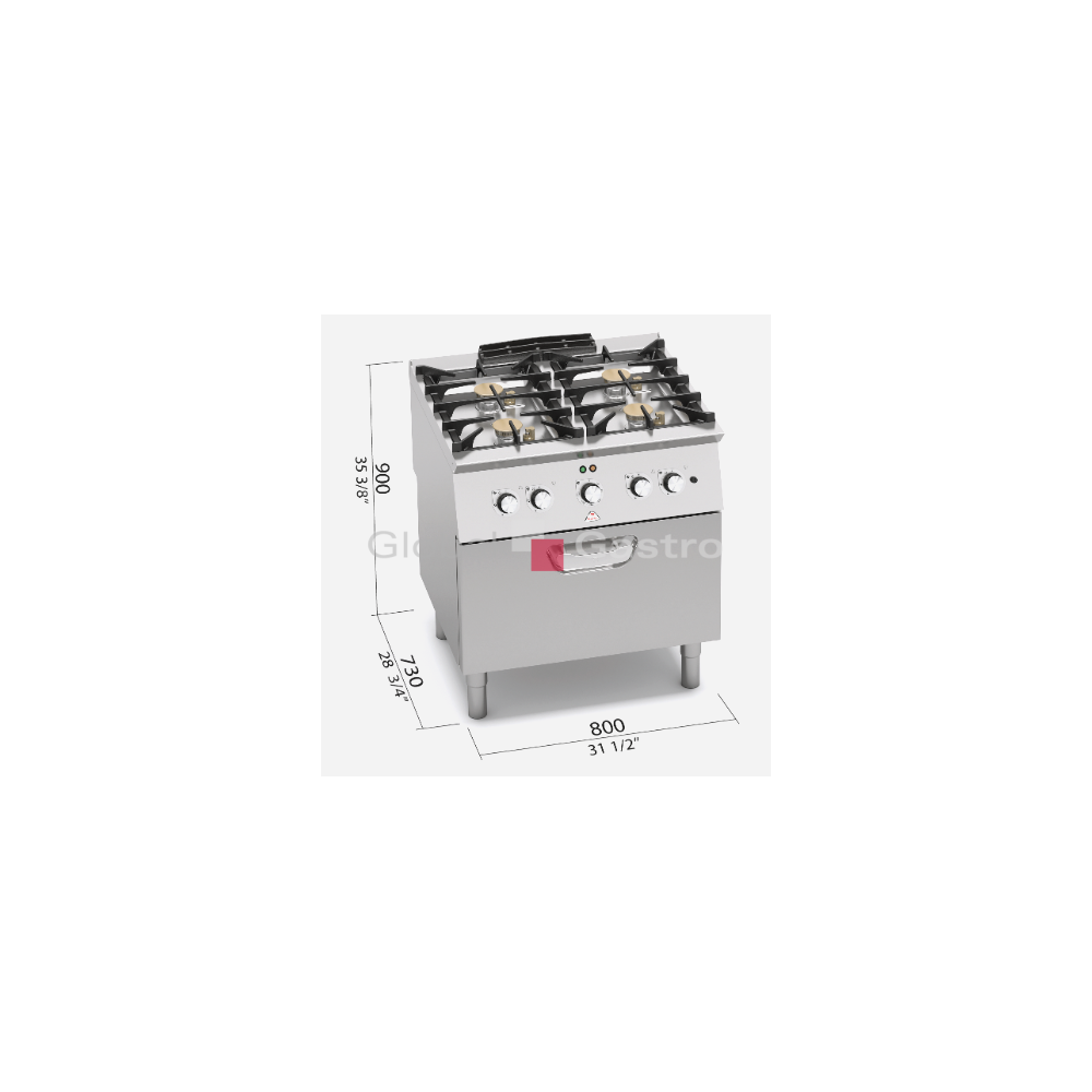 Nové výkonné sporáky linie HIGH POWER vyrobeny z odolné nerez oceli AISI 304. Profesionální poniklované litinové hořáky s vnitřním a vnějším hořením, snadno demontovatelné umístěny v prolisované nerezové vaně vybavené výpustí. Možnost napuštění vody kolem hořáků (snadné a rychlé čištění vypuštěním znečištěné vody). Hořáky s bezpečnostním termočlánkem, zapalovány věčným plamínkem. Kompaktní provedení s otevřeným podstavcem. Kompaktní provedení s výkonou elektrickou horkovzdušnou troubou GN 2/1. Pracovní plocha z nerez oceli AISI 304 tloušťka 2 mm (20/10), přední a boční panely z kvalitní nerezové oceli AISI 304. Litinové hořáky s mosazným víčkem, vybaveny pojistným termoventilem a ochranou pilotního hořáku. Úsporné, ale výkonné hořáky 5 kW jsou umístěny v prolisované hluboké vaně z nerezové oceli AISI 304.