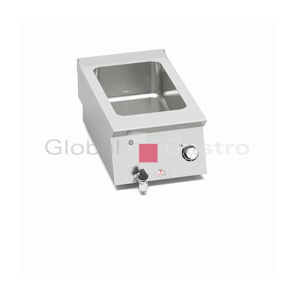 Topné těleso z Incoloy nerez oceli umístěné přímo ve vaně. Elektronická regulace výkonu. Pracovní deska z kvalitní nerez oceli AISI 304 tloušťka 2 mm (20/10), přední a boční opláštění z nerezové oceli AISI 304.