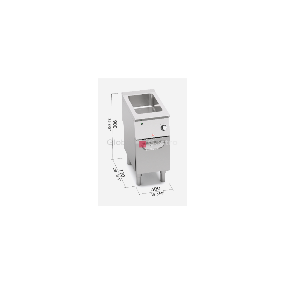 Topné těleso z Incoloy nerez oceli umístěné přímo ve vaně. Elektronická regulace výkonu. Kompaktní provedení s podstavcem. Pracovní deska z kvalitní nerez oceli AISI 304 tloušťka 2 mm (20/10), přední a boční opláštění z nerezové oceli AISI 304.