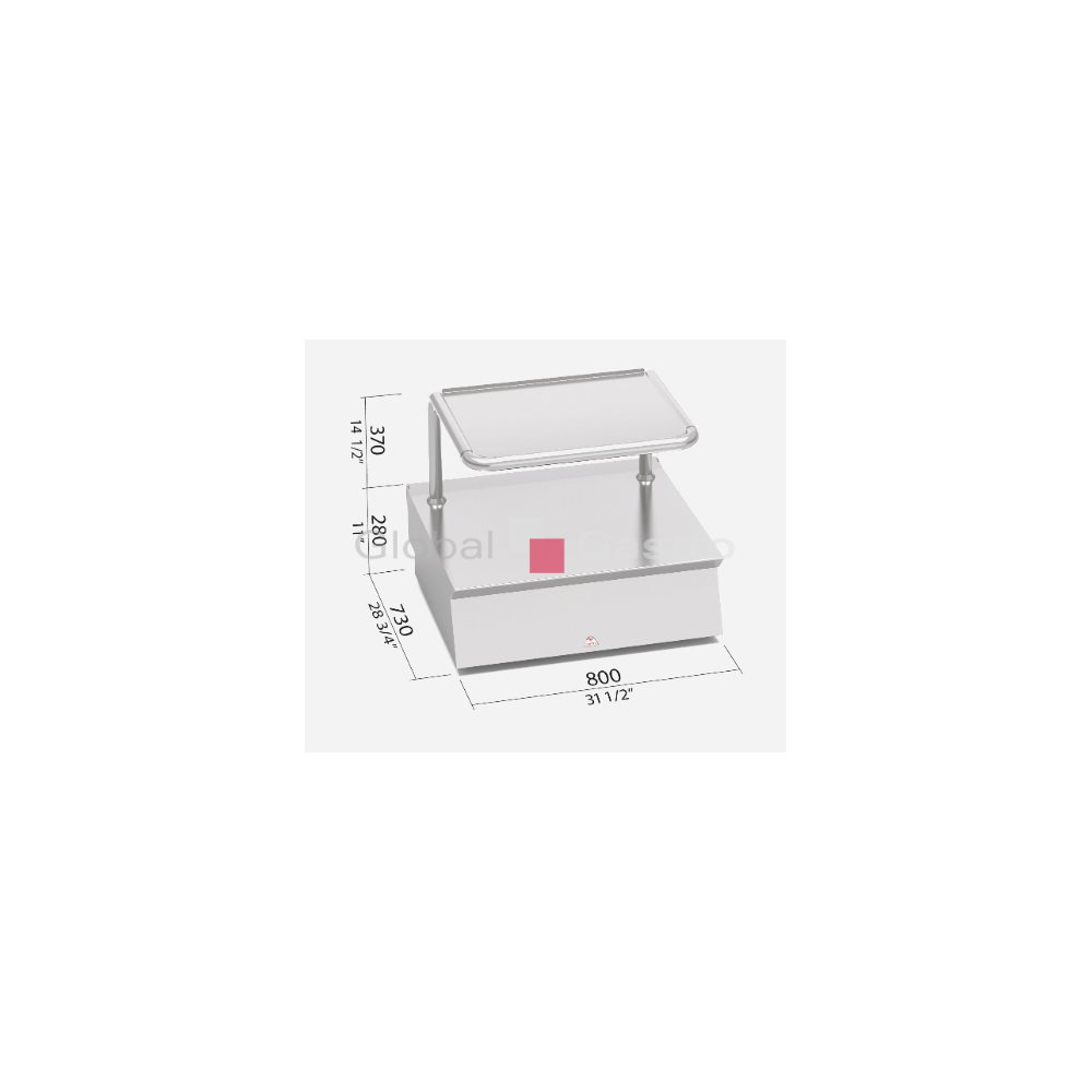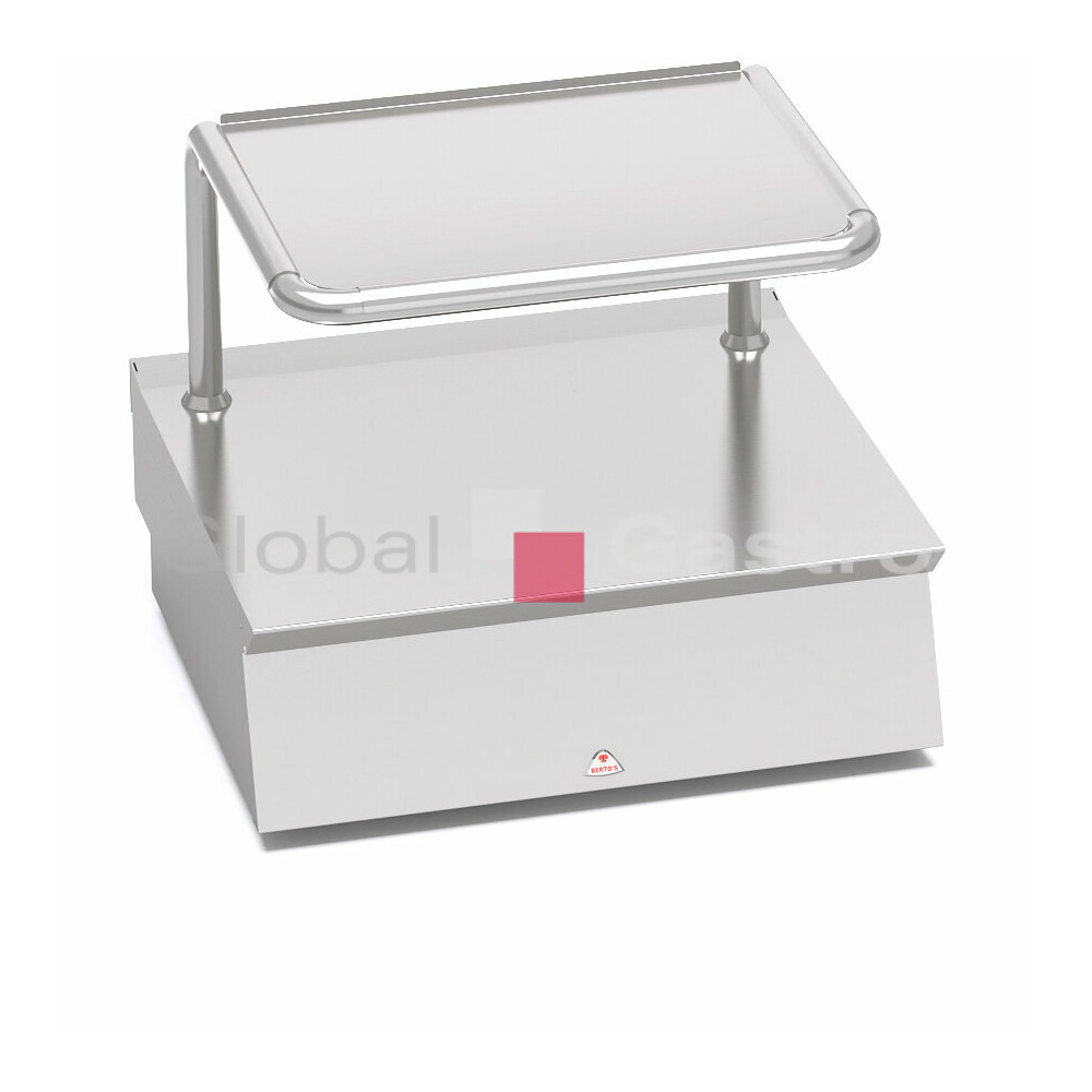 Pracovní deska z kvalitní nerez oceli AISI 304 tloušťka 2 mm (20/10), přední a boční opláštění z nerezové oceli AISI 304. PROVEDENÍ celonerezové s policí pro Salamander a úpravou Scotch Brite