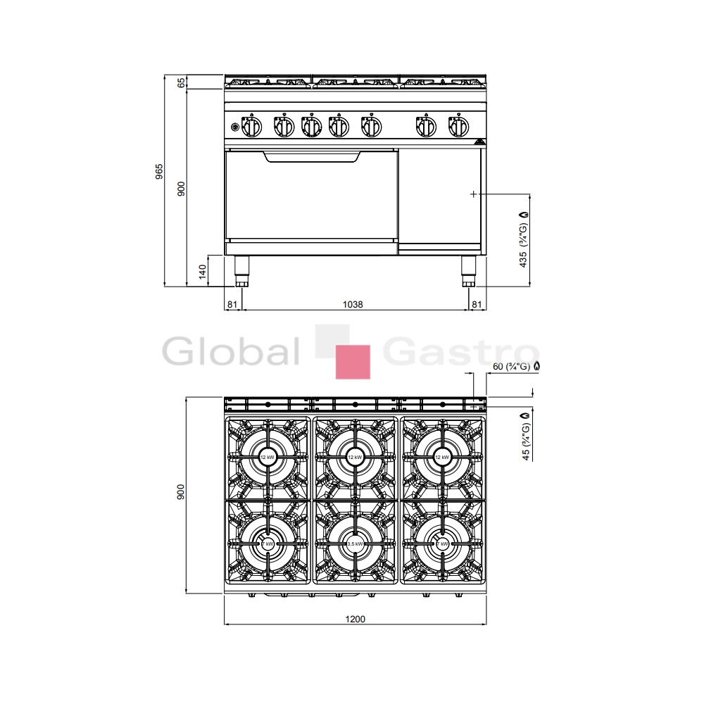 Příprava jídel přímo na plameni je u všech kuchařů nezbytná pro zdůraznění tradičních kulinářských dovedností. Tvar litinových roštůtvoří optimální pracovní plochu pro snadnou manipulaci s nádobím. Silné litinové hořáky s výkonem 3,5 kW, 7 kW a 12 kW se zaručují nadstandardní životnost. Vysoká energetická účinnost plynových hořáků umožňuje uspořit nejméně 30% plynu ročně v porovnání s tradičními hořáky. Odkapové vaničky pod hořáky mají zaoblené hrany, jsou kompletně odnímatelné. Vše je navrženo tak, aby byla snadná údržba a čištění.