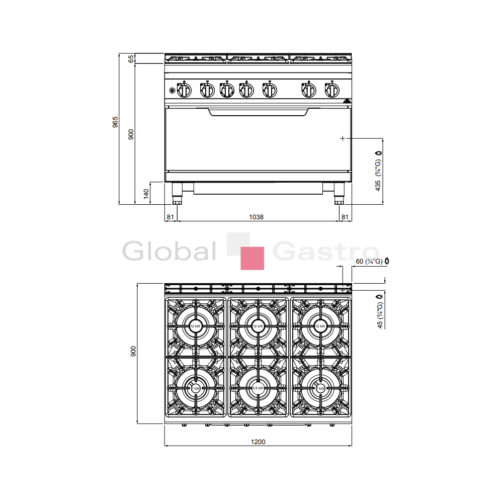 Příprava jídel přímo na plameni je u všech kuchařů nezbytná pro zdůraznění tradičních kulinářských dovedností. Tvar litinových roštůtvoří optimální pracovní plochu pro snadnou manipulaci s nádobím. Silné litinové hořáky s výkonem 3,5 kW, 7 kW a 12 kW se zaručují nadstandardní životnost. Vysoká energetická účinnost plynových hořáků umožňuje uspořit nejméně 30% plynu ročně v porovnání s tradičními hořáky. Odkapové vaničky pod hořáky mají zaoblené hrany, jsou kompletně odnímatelné. Vše je navrženo tak, aby byla snadná údržba a čištění.