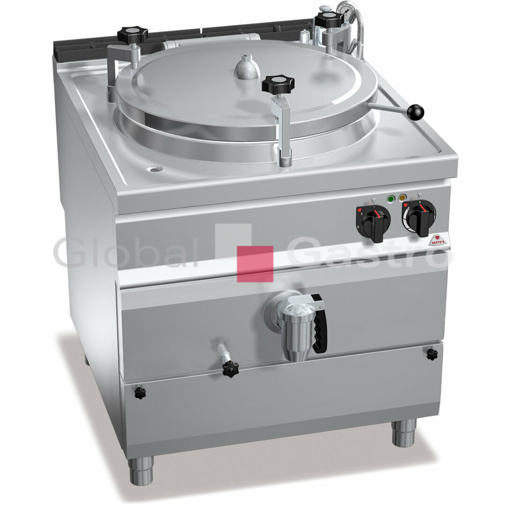 Tlakové víko s pojistným ventilem a pevnou kalibrací 0,05 bar, zajišťováno ručně stavitelnými šrouby. Nepřímý ohřev s nízkotlakou párou (0,5 bar) generovanou v meziplášti vybaveném bezpečnostním termostatem. Topné těleso je umístěno v ochraném pouzdře z nerez oceli. Mechanický ukazatel tlaku umístěný ve vnějším opláštění. Ovládání výkonu a regulace teploty pomocí termostatu. Varné kotle jsou dodávány ve verzi s přímým ohřevem (pouze plynové modely) pro vaření tekutých potravin, které nepotřebují stálé míchání, a dále modely s šetrným nepřímým ohřevem(plynové i elektrické) určené pro tepelnou přípravu (např. krémy a omáčky). Nádoba z oceli AISI 316 je vysoce odolná vůči agresivnímu prostředí. Do kotlů mohou být použity perforované koše pro vaření většího množství zeleniny. Snadná údržba a čistění díky zaobleným hranám a vypouštěcímu kohoutu, kterým jsou nečistoty odstraněny. Dvouplášťové kotle mohou být vybaveny automatickým dopouštěním vody do pláště kotle.