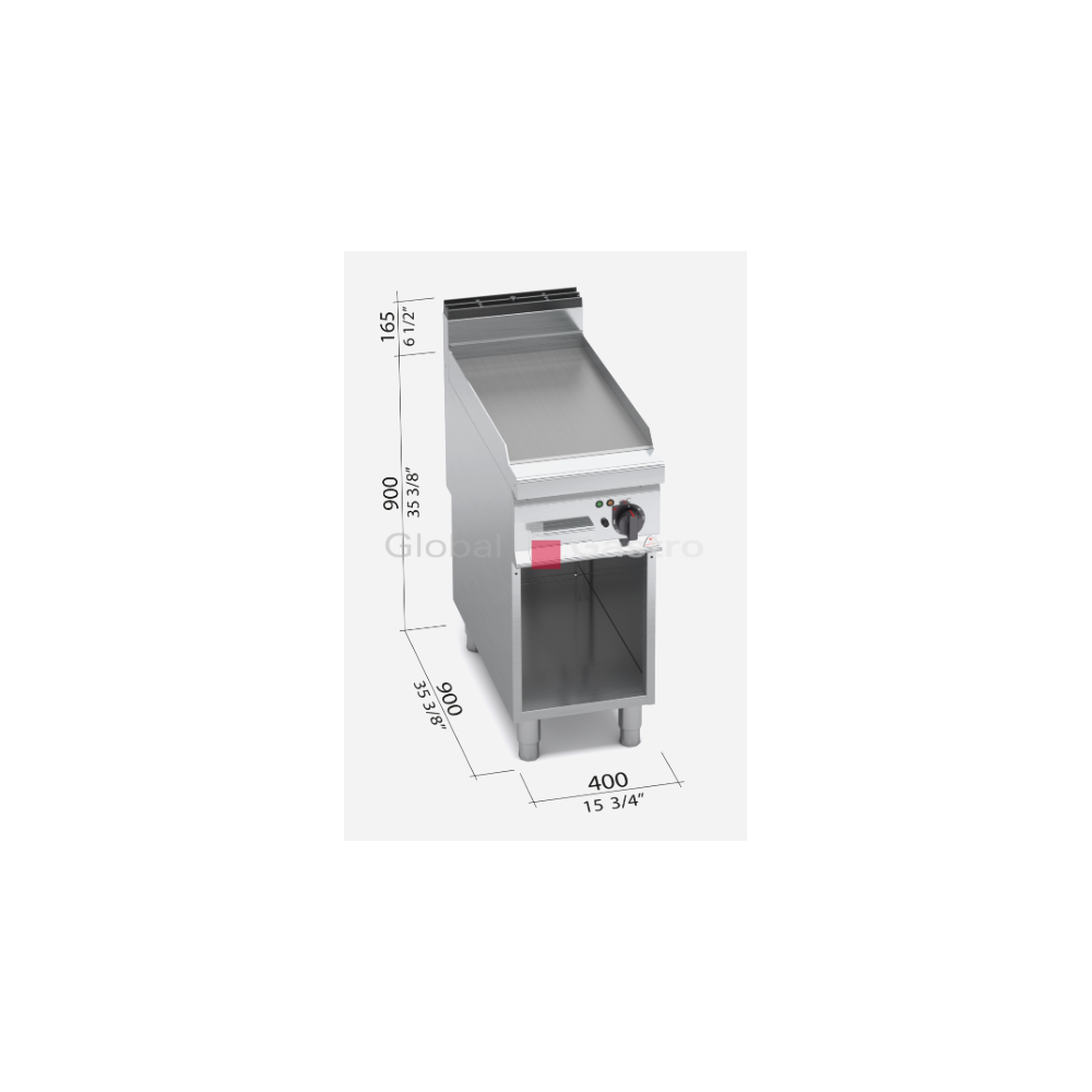Topné těleso je umístěno pod grilovací plotnou. Deska o velké tloušťce s hladkým (rýhovaným) povrchem z oceli a zvýšenými postranními lemy. Kompaktní provedení s otevřeným podstavcem. Kompletní sortiment plynových a elektrických ploten s různým provedením grilovací plochy. Lze na nich připravovat pokrmy tzv. "kontaktem" a to nejcitlivějším způsobem. Jednotný systém distribuce tepla zaručuje rovnoměrné grilování po celé pracovní ploše, velké energetické úspory a zlepšení pracovního prostředí. Při grilování se přirozeně tvoří zbytkový olej, který je odváděna shromažďován ve velké odpadní nádobce.