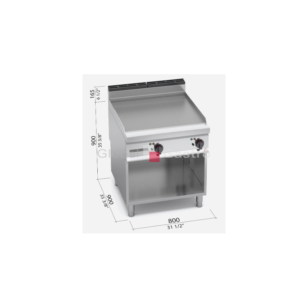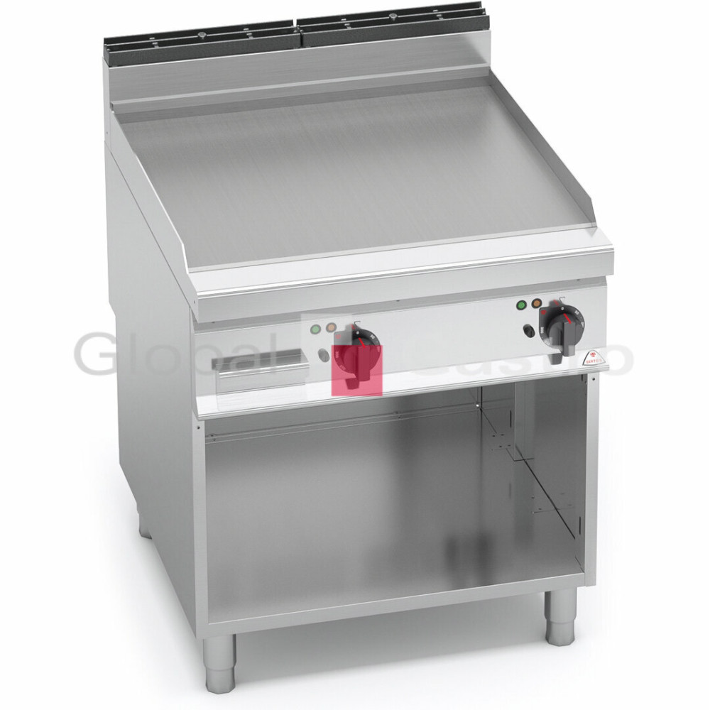 Topné těleso je umístěno pod grilovací plotnou. Deska o velké tloušťce s hladkým (rýhovaným) povrchem z oceli a zvýšenými postranními lemy. Kompaktní provedení s otevřeným podstavcem. Kompletní sortiment plynových a elektrických ploten s různým provedením grilovací plochy. Lze na nich připravovat pokrmy tzv. "kontaktem" a to nejcitlivějším způsobem. Jednotný systém distribuce tepla zaručuje rovnoměrné grilování po celé pracovní ploše, velké energetické úspory a zlepšení pracovního prostředí. Při grilování se přirozeně tvoří zbytkový olej, který je odváděna shromažďován ve velké odpadní nádobce.