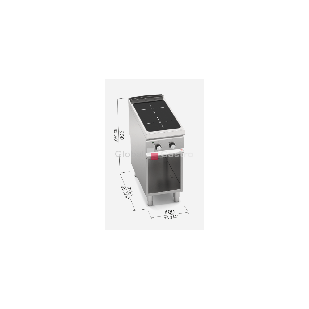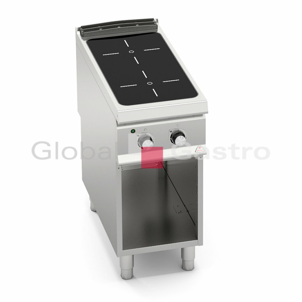 Keramická varná deska tloušťka 6 mm. Elektrická topná tělesa o Ø300 mm a výkonu 4kW dosahují při vaření v kruhových zónách vysokých teplot (do 500°C). Plochy zón jsou označeny speciálním serigrafem, dle kterého je určena správná poloha hrnce. Světelná signalizace zbytkového tepla do 60°C při vypnutí každé zóny pro ochranu uživatele. Kompaktní provedení s otevřeným podstavcem.