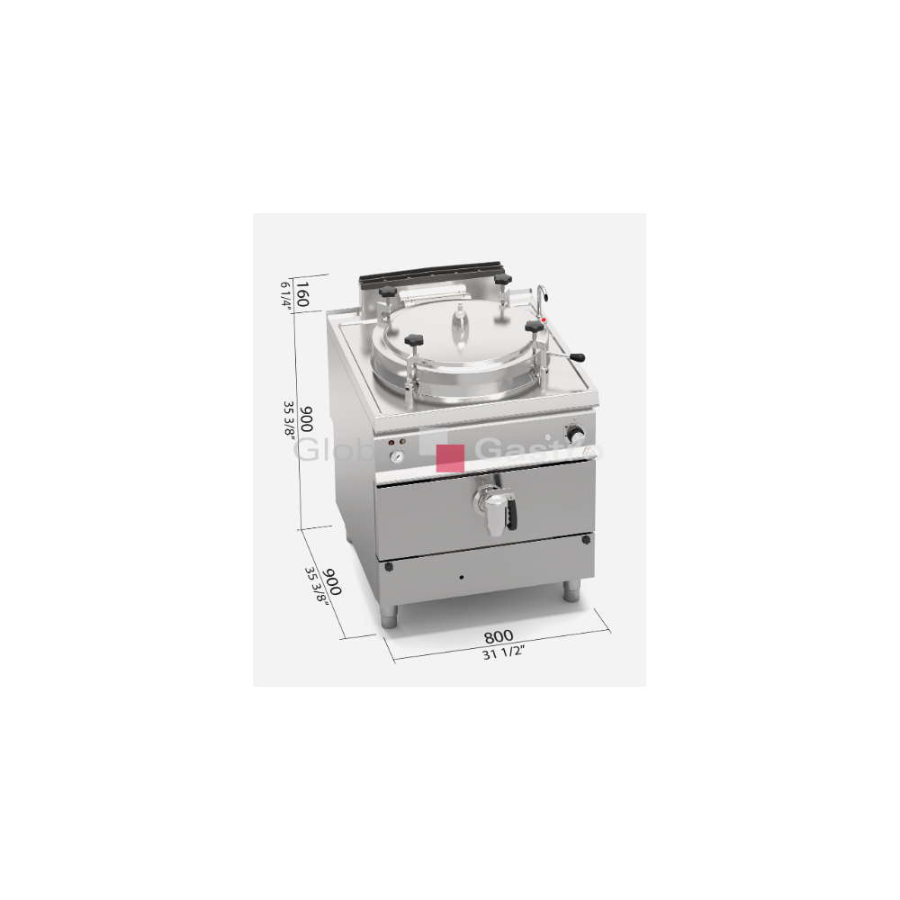 Tlakové víko s pojistným ventilem a pevnou kalibrací 0,05 bar, zajišťováno ručně stavitelnými šrouby. Přímý ohřev generován trubkovým hořákem z nerezové oceli s optimalizovaným spalováním, bezpečnostním ventilem, termočlánkem a chráněným zápalný plamínek. Piezoelektrické zapalování s gumovou ochranou. Regulace teploty ventilem s horní a dolní pozicí. Ve standardu elektrické zapalování. Dvouplášťové izolované víko.