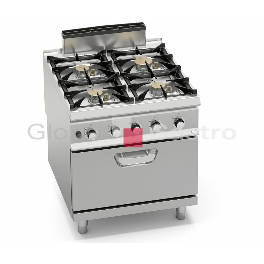 Profesionální plynový sporák Heavy Duty se čtyřmi chromovanými hořáky o výkonu 7,5 kW a hladkou...