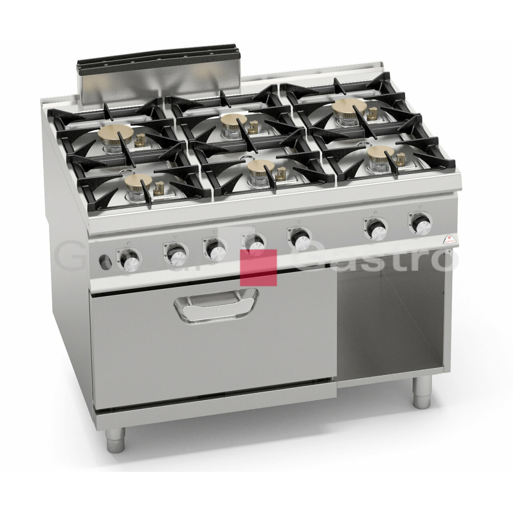 Nové výkonné sporáky linie HIGH POWER vyrobeny z odolné nerez oceli AISI 304. Profesionální poniklované litinové hořáky s vnitřním a vnějším hořením, snadno demontovatelné umístěny v prolisované nerezové vaně vybavené výpustí. Možnost napuštění vody kolem hořáků (snadné a rychlé čištění vypuštěním znečištěné vody). Hořáky s bezpečnostním termočlánkem, zapalovány věčným plamínkem. Kompaktní provedení s výkonnou plynovou troubou GN2/1.