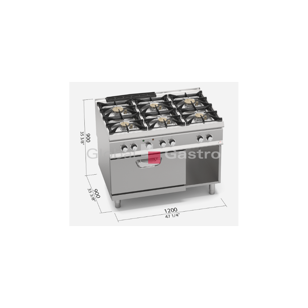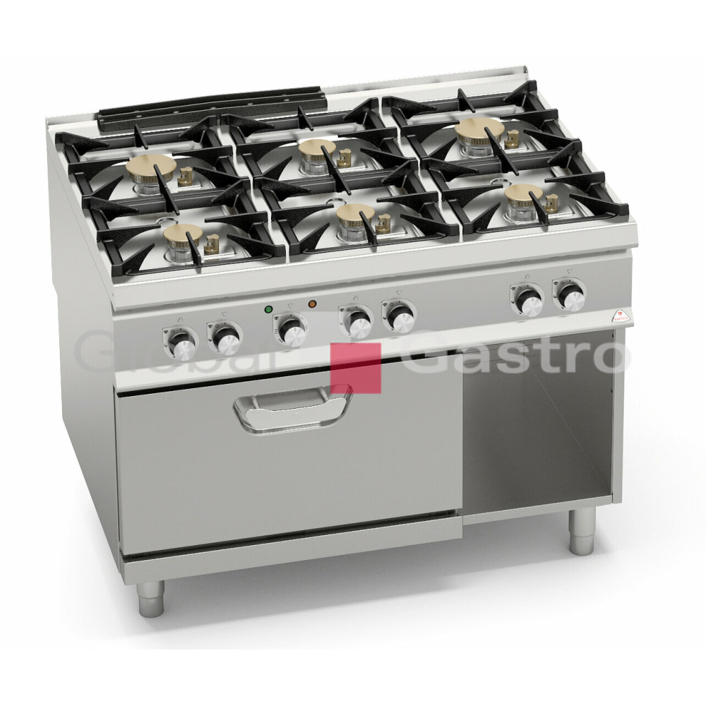 Nové výkonné sporáky linie HIGH POWER vyrobeny z odolné nerez oceli AISI 304. Profesionální poniklované litinové hořáky s vnitřním a vnějším hořením, snadno demontovatelné umístěny v prolisované nerezové vaně vybavené výpustí. Možnost napuštění vody kolem hořáků (snadné a rychlé čištění vypuštěním znečištěné vody). Hořáky s bezpečnostním termočlánkem, zapalovány věčným plamínkem. Kompaktní provedení s elektrickou horkovzdušnou troubou GN 2/1.