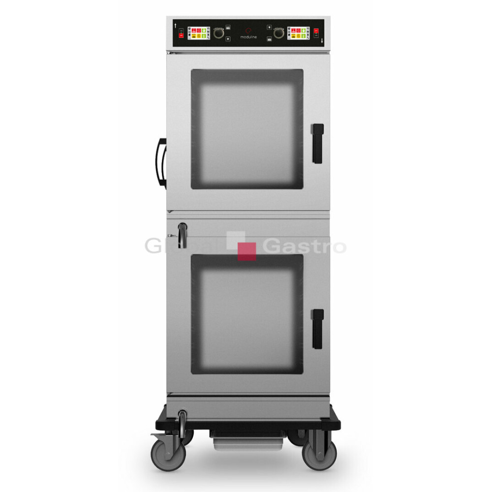 Zařízení CHC-282E (dvě komory) je určeno k nízkoteplotnímu pečení, pečení ”přes noc”, dohotovení a udržení teploty hotových pokrmůve stavu jako by byli právě nyní připraveny díky šetrnému ohřevu (statický kruhový topný systém bez ventilátoru, měkké sálavé teplo využívající vlhkosti surovin), přesné elektronické kontrole teploty (v komoře a jádru produktu s vpichovou teplotní sondou), času a systému odvlhčení komory. Snadné programovatelné řízení (LCD dotykový displej plus otočný ovladač) k využití až 200 programů s dalšími podkroky (90 receptů dodáno s MODULINE - MY CHEF). Pec je vybavena osvětlením komory a zvukovou signalizací. Dálemáte možnost ukládat až 30 různých teplot v jádru a s USB portem (příplatkově) také data HACCP až 13 dnů po 24 hodin. Nízkoteplotní zařízení nevysušuji potraviny a výrazně snižují ztráty hmotnosti, šetří energii (pouze 3+3kW), napětí pouze 230V, nepotřebuji zvlhčování a připojení na odpad. Nepřekonatelný konečný výsledek úpravy masa.
