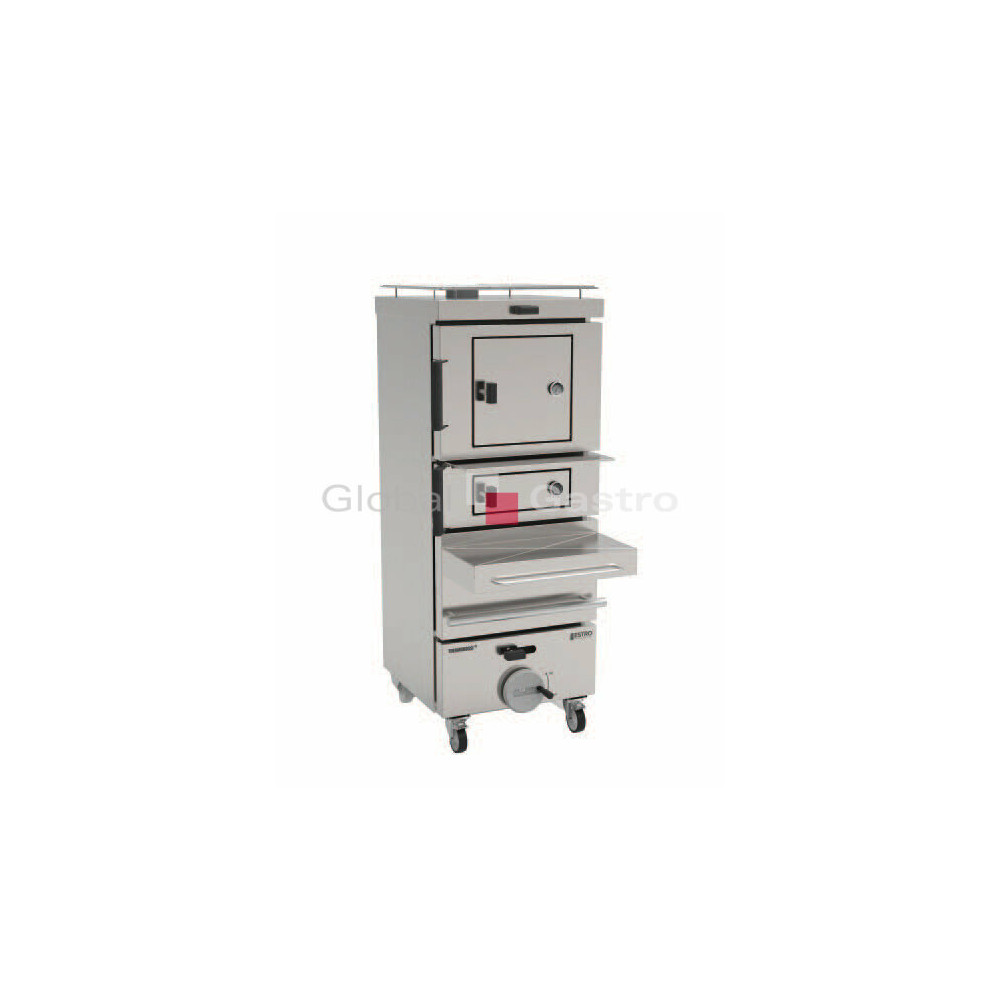 Pece jsou svojí konstrukcí určeny pro spalování buď dřeva, nebo dřevěného uhlí, slouží jako gril/pec, a můžete v nich vařit nebo grilovat v uzavřené komoře. Spalovací komora z ušlechtilé oceli a litiny, s povrchovou úpravou z nerezové oceli, zaručuje robustnost, dlouhou životnost a vysokou hygienu. Ideální pro grilování, gratinování, regeneraci, zakouření a pražení. Topeniště je navrženo tak, aby pojalo 5 kg dřevěného uhlí, 7 kg palivového dříví. Vzduch pro spalování je regulovatelný a umožňuje tak použití různých druhů paliva: dřevo, uhlíkový koks a lisované cihly. Topeniště lze posunovat až do výšky 20 cm a je tak zajištěna dodávka tepla během poslední části výroby. Další možnost nastavení při vaření je prostřednictvím regulátoru tahu v horní části zařízení. Inovativní otevírání komor grilu. Dveřní závěsy nejsou přímo v kontaktu s vysokou teplotou a spalinami v komoře (s výjimkou jejich opravy). Každá komora je vybavena grilovacím roštem z nerezové slitiny s keramickým nepřilnavým povrchem, snadno odnímatelný a lze jej mýt v myčce. Komory jsou otevírány pomocí ergonomických teplovzdorných rukojetí a jsou vybaveny bezpečnostní a hermetickou západkou. Dále jsou komory vybaveny ohnivzdornou zadní částí, která zabraňuje úniku výparů a tepla na pracoviště. Dveře s rukojetí zabraňují infiltraci kyslíkem, zlepšují výkon a tepelnou účinnost. Otevřením kontrolních dvířek je možné sledovat vařené potraviny. Teplota v komorách je zobrazena analogovými teploměry. Teploměry jsou obklopeny průhledným sklem, aby bylo možné monitorovat náhodný přírůstek plamene. Zařízení je svojí konstrukcí úsporné na místo. Ochrana proti korozi a kolečka pro usnadnění manipulace.