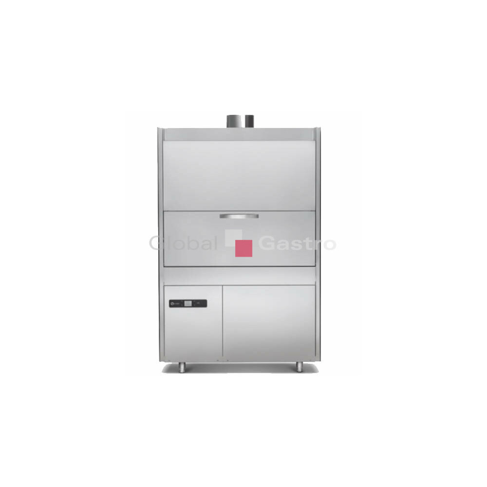 Automatická dvouplášťová myčka kuchyňského (černého) nádobí VS P109-86N-DBS s čelním plněním v celonerezovém provedení. Speciální konstrukce mycích ramen proti zanášení (snadno demontovatelná pro čištění) doplněny o dvě postranní vertikální statická ramena výrazně zvyšující účinek mytí i bočního. Lisovaná vana s dvojitými filtry a oblými rohy pro hygienu a snadnou údržbu. Dvouplášťové provedení výrazně snižuje hladinu hluku a tepelné ztráty (náklady na energie, lepší pracovní prostředí). Velký nerezový zakládací koš (615 x 1150 mm) a úložná výška až 860 mm (využitelná výška 835mm) umožňuje mýt podnosy, gastronádoby, pekařské plechy, přepravky (800x600 a 600x400 mm). Vysoce účinné mycí čerpadlo zajišťuje dostatečný výkon pro 4 mycí a 4 oplachová rotační nerezová ramena. Bezproblémový chod stroje zaručuje snadné elektronické ovládání s LCD displejem EVO2 s funkcí automatického startu při uzavření zákrytu. Čtyři přednastavené mycí cykly pro různé typy nádobí. Dvě úrovně menu: ovládací a technické (chráněné kódem PIN - servis). Počítadlo denního a celkového počtu cyklů.