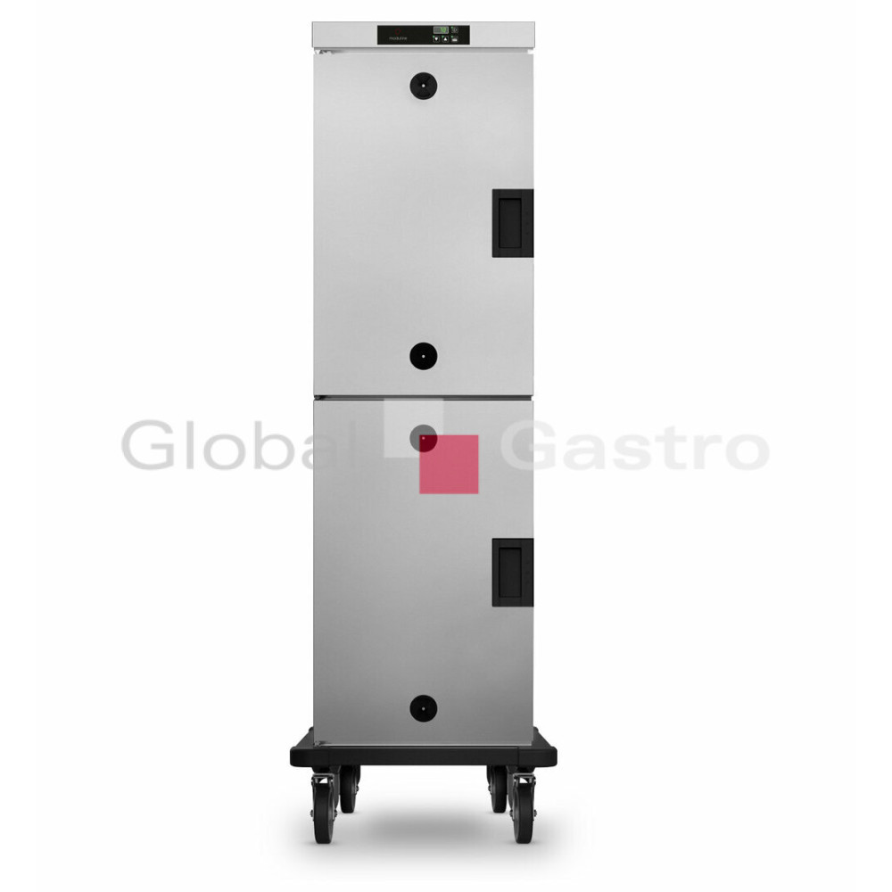 Transportní vozík HHT-161EP slouží pro udržování potravin v teplém stavu. Přesné elektronické nastavování teploty od 30 – 120°C. Ve dveřích umístěny dva ventilační otvory pro manuální odvlhčení komory. Statický kruhový topný systémem šetrného ohřevu využívána udržuje optimální vlhkost uložených potravin. Kvalitní těsnění komory, oválné rohy, vyjímatelné vnitřní zásuvy. Dveře s možností volby otevírání vlevo či vpravo vybaveny odolným těsněním. Ochrana rohů z plastu. Robustní kola 4x150mm, dvě z nich brzděná. Ergonomické madlo pro snadnou ovladatelnost vozíku. Snadná servisní údržba.
