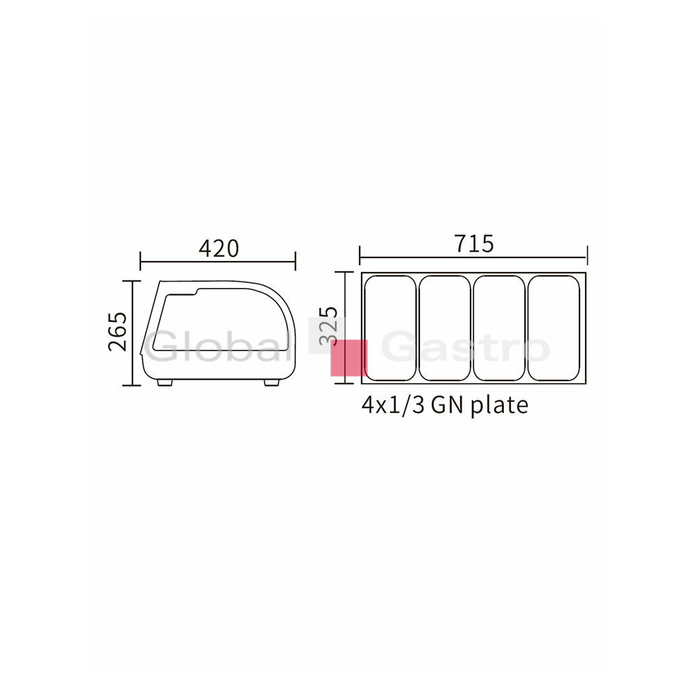 - Kapacita 4x GN1/3-40mm (nejsou součástí dodávky)