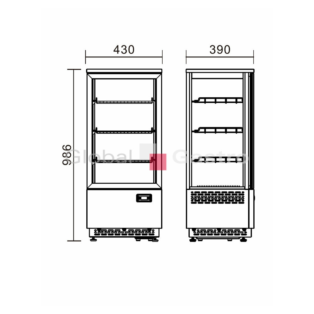 Vyhřívaná panoramatická vitrína s pevným uložením polic, určena k prezentací pokrmů. Vitrína je v...