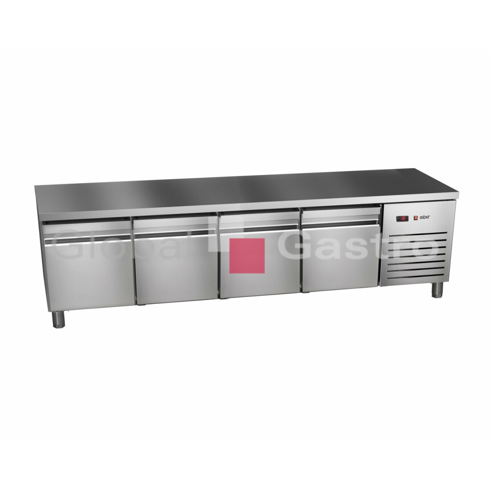 Robustní pracovní desky z nerezové oceli o tloušťce 50 mm se 100 mm vysokým zpětným dostřikem jako standardní volitelná výbava, která zabraňuje rozlití za pultem. Přizpůsobení je k dispozici v různých konfiguracích (bez stříkání, bez horní části, s dřezem a materiály (nerezová ocel, žula), aby se přizpůsobily jakýmkoli profesionálním kuchyňským potřebám.
