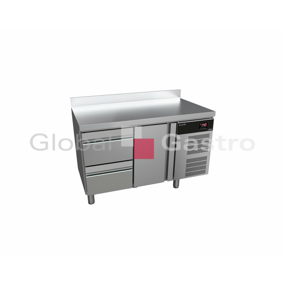 Stoly jsou vyrobené z vysoce kvalitní nerezové oceli v robustním designu s dokonalou povrchovou úpravou. Robustní pracovní nerezová deska se stříkanou 30 mm izolací, osazená standardně lemem vysokým 100 mm, který zabraňuje rozlití za chladící stůl. Zesílené stěny o tloušťce 60 mm pro menší výkyv teplot. Polyuretanová izolace s vysokou hustotou (40 kg/m³) bez CFC, vstřikovaná pod vysokým tlakem. Zásuvky jsou vyrobeny z nerezové oceli s perforovaným dnem a teleskopickými posuvnými vodítky, které umožňují úplné odtáhnutí, úspora pracovní plochy.