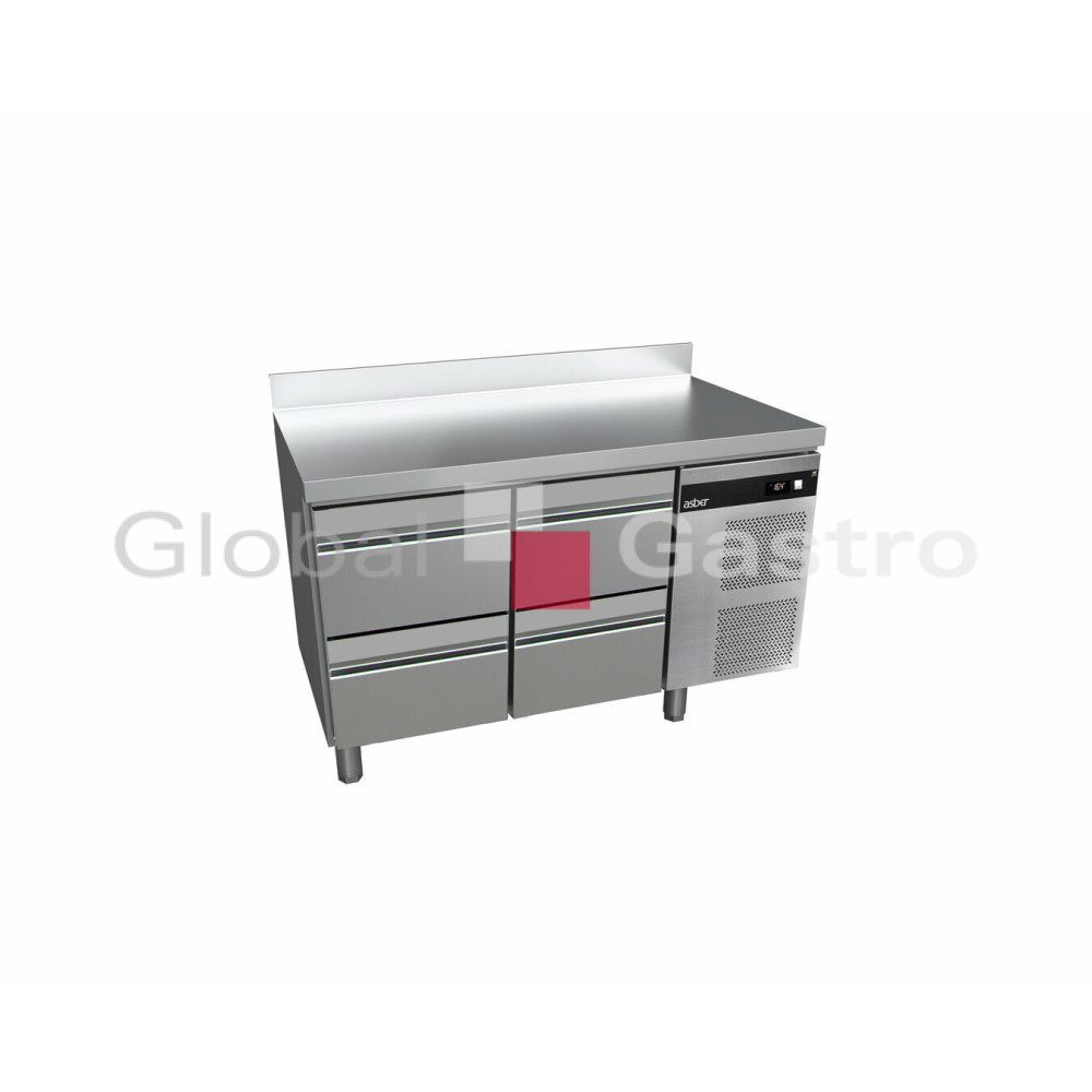 Stoly jsou vyrobené z vysoce kvalitní nerezové oceli v robustním designu s dokonalou povrchovou úpravou. Robustní pracovní nerezová deska se stříkanou 30 mm izolací, osazená standardně lemem vysokým 100 mm, který zabraňuje rozlití za chladící stůl. Zesílené stěny o tloušťce 60 mm pro menší výkyv teplot. Polyuretanová izolace s vysokou hustotou (40 kg/m³) bez CFC, vstřikovaná pod vysokým tlakem. Zásuvky jsou vyrobeny z nerezové oceli s perforovaným dnem a teleskopickými posuvnými vodítky, které umožňují úplné odtáhnutí, úspora pracovní plochy.