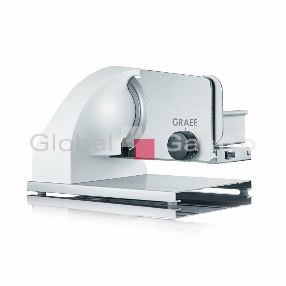 Bílá varianta vysoce kvalitního kráječe, na který je spoleh ve všech ohledech. Tichý motor o výkonu 185 W, nastavitelná tloušťka krájení a odolné provedení zaručují ten nejlepší výsledek i uživatelský zážitek. Díky praktickému provedení lze výrobek snadno a rychle čistit. Hladká ocelová čepel se dá brousit i doma. Kráječ je velmi stabilní a jednoduše se ovládá. Typický vzhled produktů Graef se perfektně hodí k doplnění příjemného vzhledu vaší kuchyně. Hmotnost je 9.645 kg.