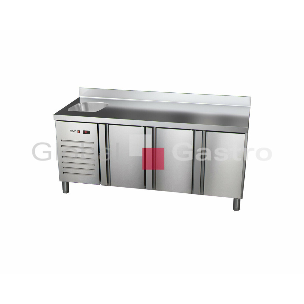 Třísekcový barový chladící stůl. Model v celonerezovém provedení (AISI 304), s chlazenou vanou...