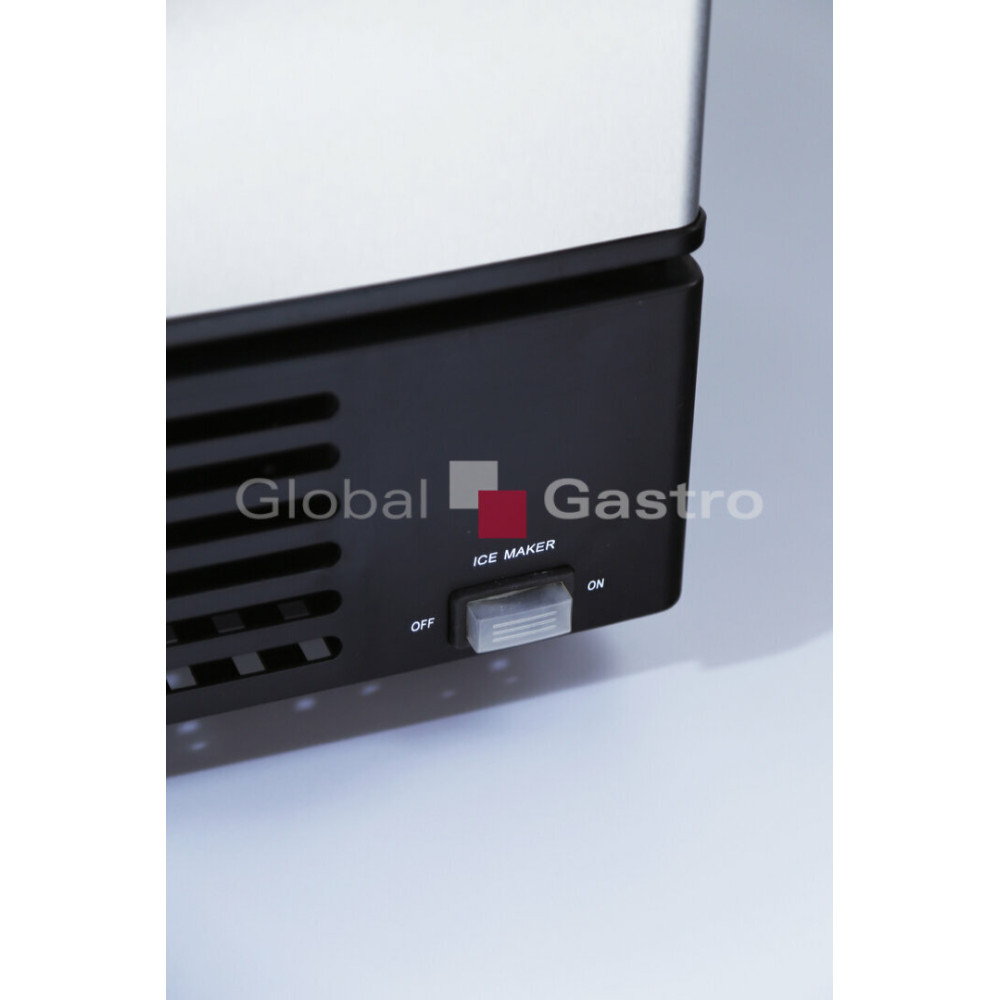 Výrobník nápojového ledu, tvar měsíčky určen pro domácí a lehké provozy. Výrobník je s připojením na vodu, s nerezovými křídlovými dvířky s vyjímatelným těsněním, hygienický vnitřní prostor s vnitřní vyjímatelnou nádobou na vytvořený led s kapacitou 6kg. Čelní kryt s otvory pro snadný přístup vzduchu a chlazení agregátu. Vnější provedení z nerezové oceli (dvířka) a opláštění v elegantním černém laku. Snadné mechanické ovládání umístěné na čelním krytu (ON/OFF).