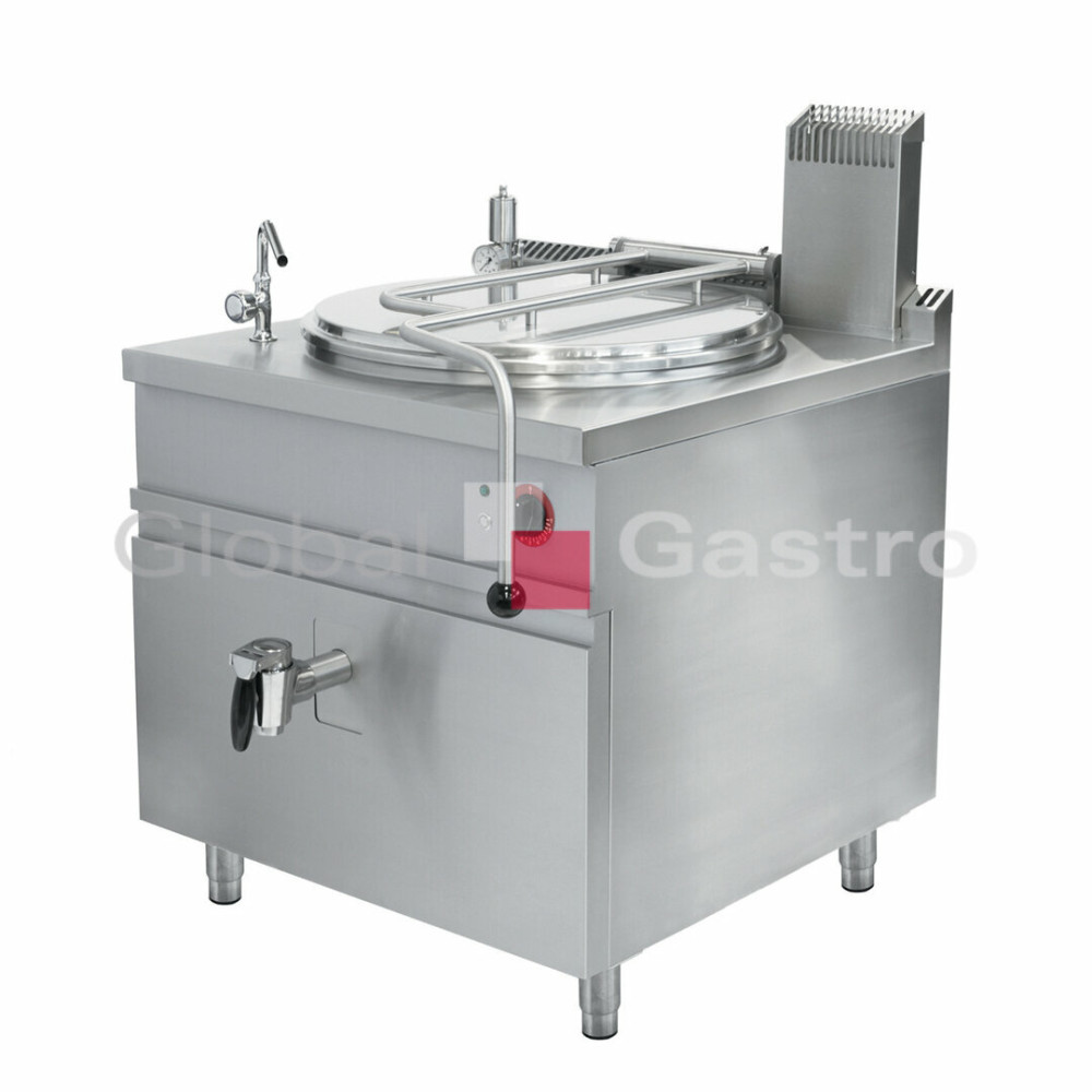 Profesionální výkonné kotle pro velkokuchyně jsou vyrobeny z kvalitních materiálů k rychlému ohřevu a varu pokrmů a nápojů. Kotle se vyznačují jednoduchým ovládáním. Užitný objem 150 litrů (celkový 166 l). Dno vnitřní nádoby z nerezové oceli AISI 316L (zvýšená odolnost solím a kyselinám). Pracovní plocha a čelní opláštění z nerezové oceli AISI 304L (potravinářská). Dno duplikátoru ze žáruvzdorné oceli. Automatické napouštění duplikátoru. Plynulá regulace síly ohřevu. Napouštění vody do kotle baterií na studenou vodu. Bezpečnostní tlakový ventil s automatickým odvzdušňováním. Tlumič hluku unikající páry. Masivní konstrukce. Jednoduchá obsluha. Mosazný zabroušený bezúdržbový výpustný kohout 2". Sendvičová izolace duplikátoru.