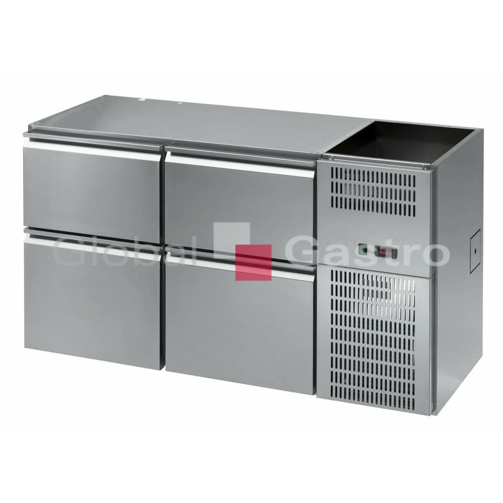 Chladicí stoly výčepní FEGD / FEGS110E, 102E, 220E, 212E a 204E jsou určeny pro vestavění pod pult výčepu. V základu bez pracovní desky! Stoly jsou vyrobeny v celonerezovém provedení (AISI 304) s vestavěným agregátem, který je dle verze umístěn vpravo (D) nebo vlevo (S). Digitální ovládání s displejem pro snadné nastavení teploty v chladícím prostoru. Ventilované chlazení, automatické odtávání s odpařováním kondenzátu. Vybaveny hlubokými zásuvkami pro nápoje, nebo s dvířky (prostor pro Keg sud). Příplatkově lze doplnit prostor o vnitřní úložnou policí na nápoje a zámky dveří nebo zásuvek.