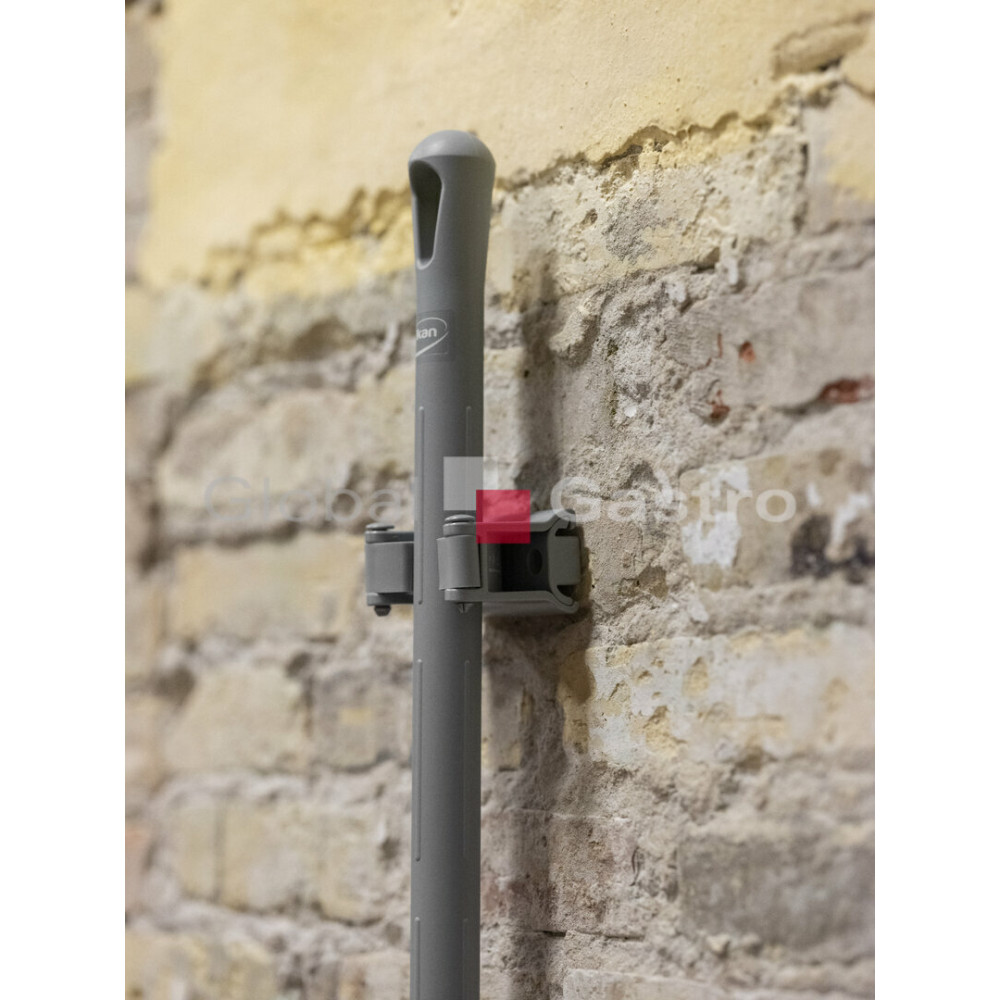 - Funkce: Svorka slouží k upevnění na nástěnný držák a umožňuje bezpečné uchycení čisticích nástrojů a potřeb.