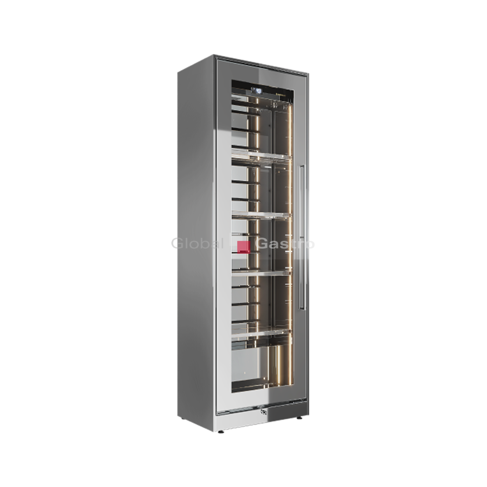 Model WYN4S je součástí kolekce vinoték WINE, která spojuje elegantní vzhled, úsporné rozměry a profesionální výkon. Díky své hloubce pouze 460 mm je ideální do prostor s omezeným místem, aniž by utrpěla estetika nebo kapacita. Perfektní řešení pro restaurace, vinárny, hotely či moderní interiéry. Řada Infinity vyniká svou elegancí s přesnými, dobře definovanými liniemi, dokonalou geometrií a špičkovou technologií. Vnitřní LED osvětlení podél bočních panelů a nerezového vnitřku vytváří působivý efekt hloubky a hry světla, čímž umocňuje vizuální dojem lahví a vytváří světlý a příjemný prostor. Police dodává vitríně hřejivost, eleganci a podtrhuje její sofistikovaný vzhled. V ceně jsou 4 police na stojící láhve (každá po 17 ks). V případě zájmu je možnost zakoupení i jiných polic.