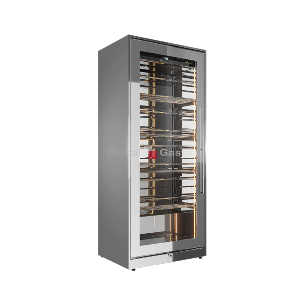 Model WYN6L je větší variantou kompaktní řady vinoték, která spojuje vysokou kapacitu, prémiové materiály a elegantní vzhled. Je ideální pro prostředí, kde je kladen důraz na tichý provoz, stylovou prezentaci vín a spolehlivou regulaci teploty – jako jsou restaurace, vinotéky, hotely nebo degustační zóny. Řada Infinity vyniká svou elegancí s přesnými, dobře definovanými liniemi, dokonalou geometrií a špičkovou technologií. Vnitřní LED osvětlení podél bočních panelů a nerezového vnitřku vytváří působivý efekt hloubky a hry světla, čímž umocňuje vizuální dojem lahví a vytváří světlý a příjemný prostor. Police dodává vitríně hřejivost, eleganci a podtrhuje její sofistikovaný vzhled. V ceně jsou 4 police na stojící láhve (každá po 45 ks). V případě zájmu je možnost zakoupení i jiných polic.