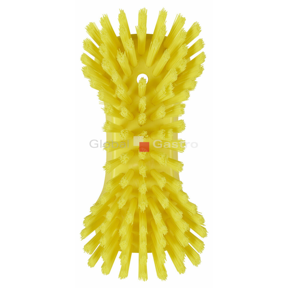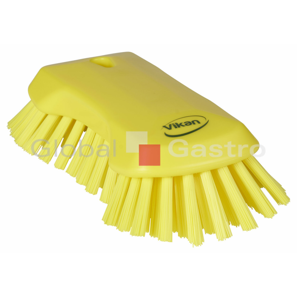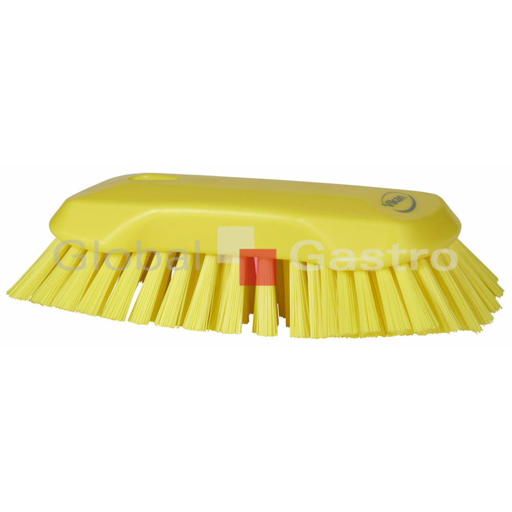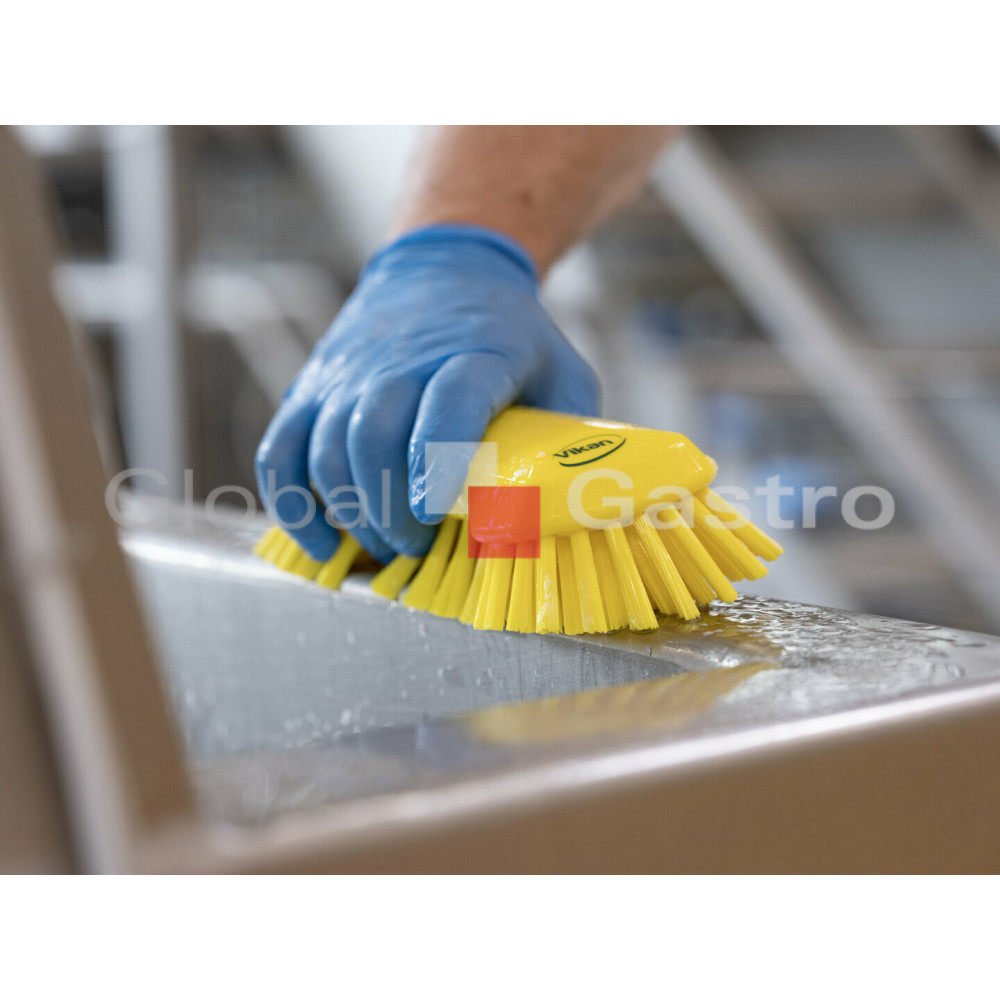 Ruční kartáč XL je velmi oblíbený v masném a mlékárenském průmyslu a díky své velikosti a tuhým štětinám odvádí působivou práci. Pokud potřebujete vyčistit větší plochy s těžko dostupnými rohy nebo mezerami, tento velký kartáč může být právě tím nástrojem, který potřebujete. Robustní kartáč se skládá z pevného bloku 29 mm. Speciální „motýlí tvar“ bloku nabízí uživateli lepší a ergonomičtější úchop. Kartáč sedí v jedné rovině s rukama většiny uživatelů, takže se pohodlně a snadno drží i při manipulaci s čisticími chemikáliemi a s mokrýma nebo mastnýma rukama. Stejně jako všechny kartáče z naší hygienické řady je i ruční kartáč Vikan XL navržen pro použití v oblastech, kde jsou vyžadovány nejvyšší standardy čistoty a hygieny. To z nich dělá ideální čisticí nástroj pro potravinářský průmysl. Hladký povrch, absence ostrých hran a šikmý, vypouštěcí otvor pro zavěšení usnadňují čištění a skladování. Ať už čistíte nádrže, stoly, dopravní pásy nebo kbelíky, ruční kartáč XL s extra tuhými štětinami vám pomůže dokončit práci rychle a efektivně.