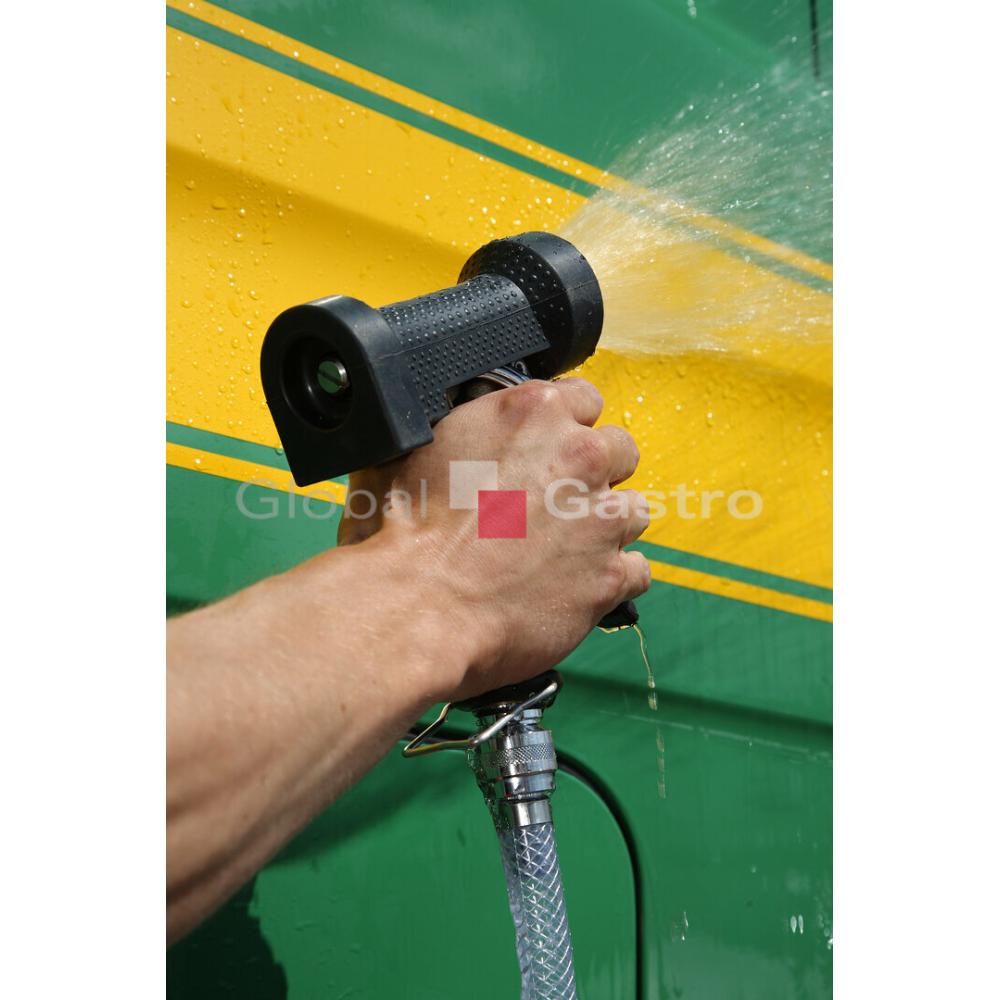 Rozstřikovač tlakové vody z nerezové oceli, mosazi a gumy. Nástroj má mosaznou hadicovou koncovkou. Hodí se pro čištění strojů, podlah, stěn a pracovních povrchů. Rozstřikovač je konstruovaný na tlakovou vodu až 24 bar a teplotu 95 °C.
