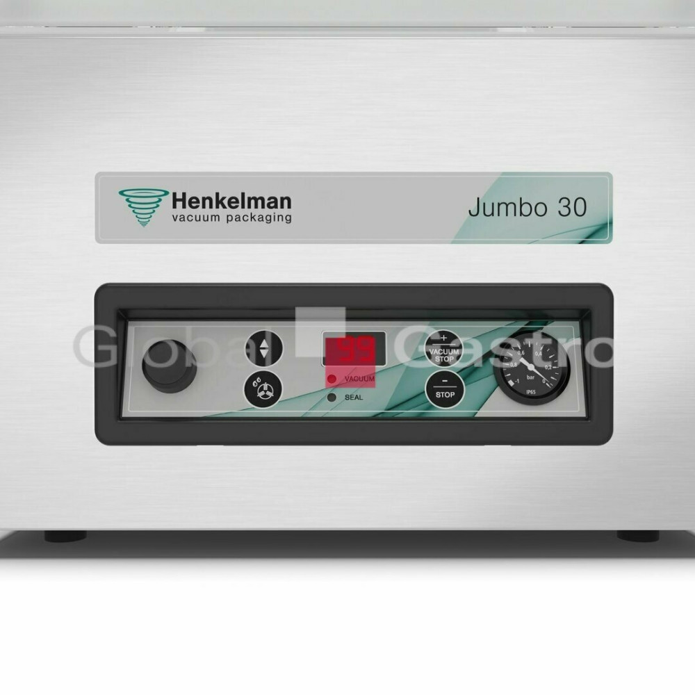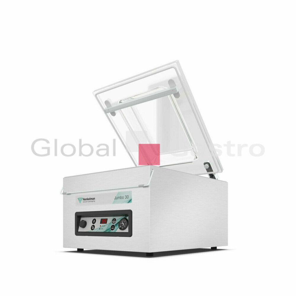Prodlužte trvanlivost masa, drůbeže, ryb, sýrů, zeleniny a dalších potravin včetně tekutin. Ochraňte je před působením vnějších vlivů. S výkonnou, profesionální a spolehlivou jednokomorovou vakuovou baličkou Jumbo Plus od holandské firmy Henkelman to půjde snadno. Vakuová komora se zaoblenými rohy má délku komory 370 mm, šířku lišty 345 mm (max. šířka sáčku) a výšku komory 150 mm a dokonale uchová trvanlivost produktů.