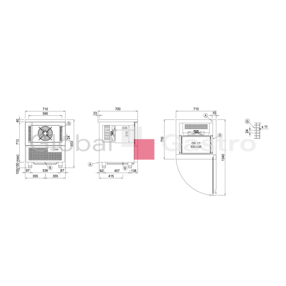 Model pro 5 plechů (GN1/1) je dodáván s nerezovým vyjímatelným zásuvným rámem.
