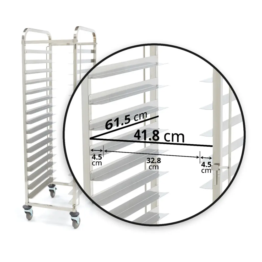 Vzhledem k tomu, že v pohostinství je toho často potřeba převážet hodně, je v pekárnách, restauracích, hotelech nebo samoobslužných zařízeních nepostradatelný robustní vozík na podnosy. S tímto profesionálním vozíkem lze přepravovat příbory, nádobí, tácy, talíře a ingredience. Vozík má 16 polic, do kterých lze zasunout tácy, zásobníky nebo talíře. Robustní konstrukce tohoto vozíku zajišťuje, že zvládne těžkou práci. Nohy jsou opatřeny nárazníkem a nechybí ani madlo pro snadné přemisťování vozíku.