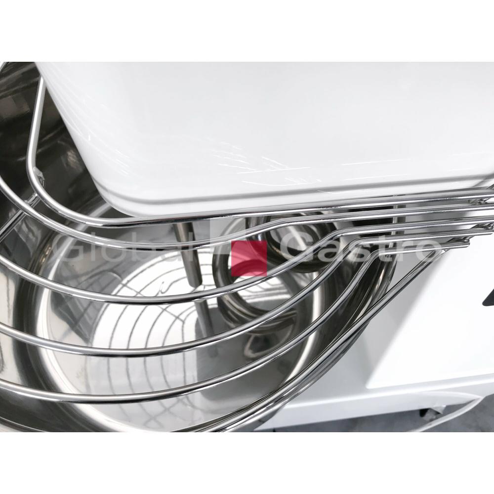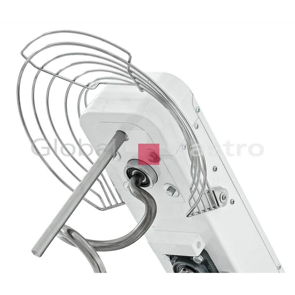 Vyklápěcí hlava usnadňuje přístup k míse a spirále, ochranná sklopná mřížka chrání obsluhu před kontaktem s pohyblivými částmi během provozu. Všechny bezpečnostní prvky odpovídají směrnicím CE. Ovládací panel je přehledný a doplněný mechanickým časovačem. Součástí výbavy jsou kolečka s brzdami pro snadnou manipulaci v kuchyni či pekárně.