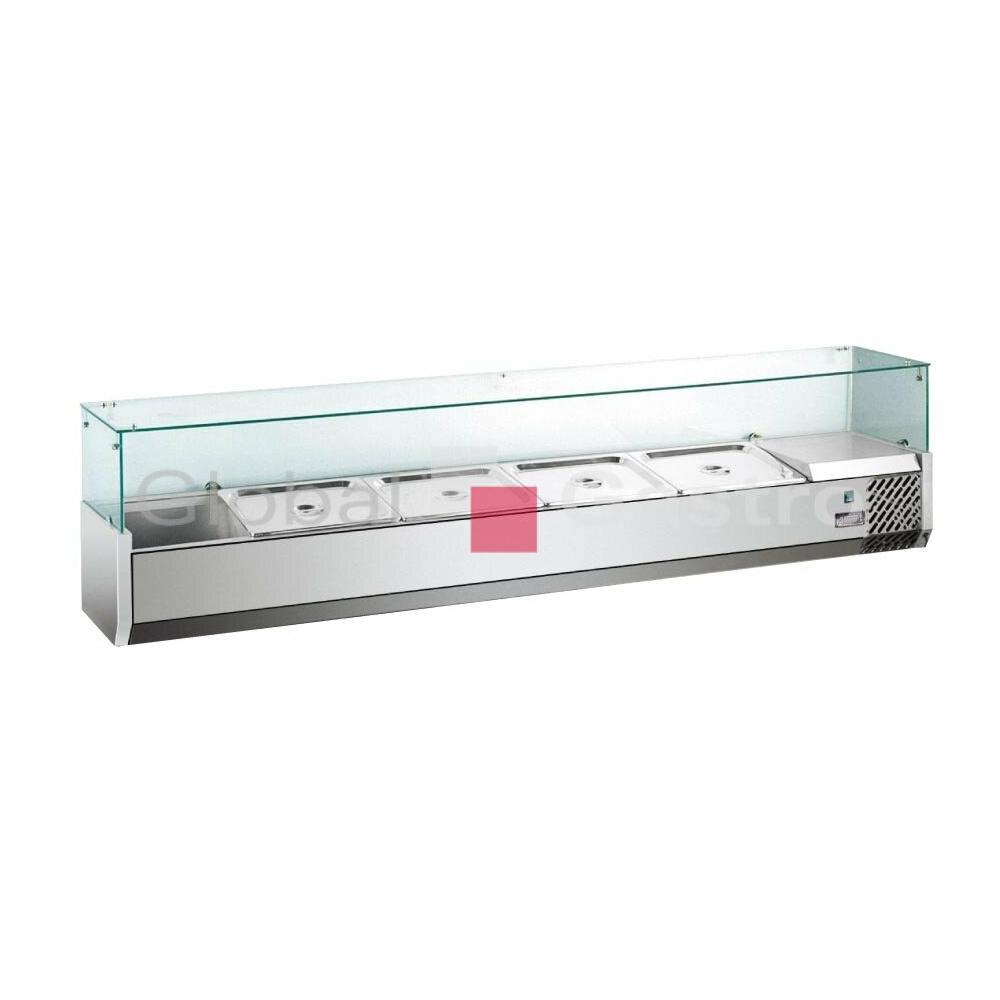Pizza chladící pultová vitrína MVRX1200-1/3 v celonerezovém provedení s prosklenou hygienickou nástavbou.
