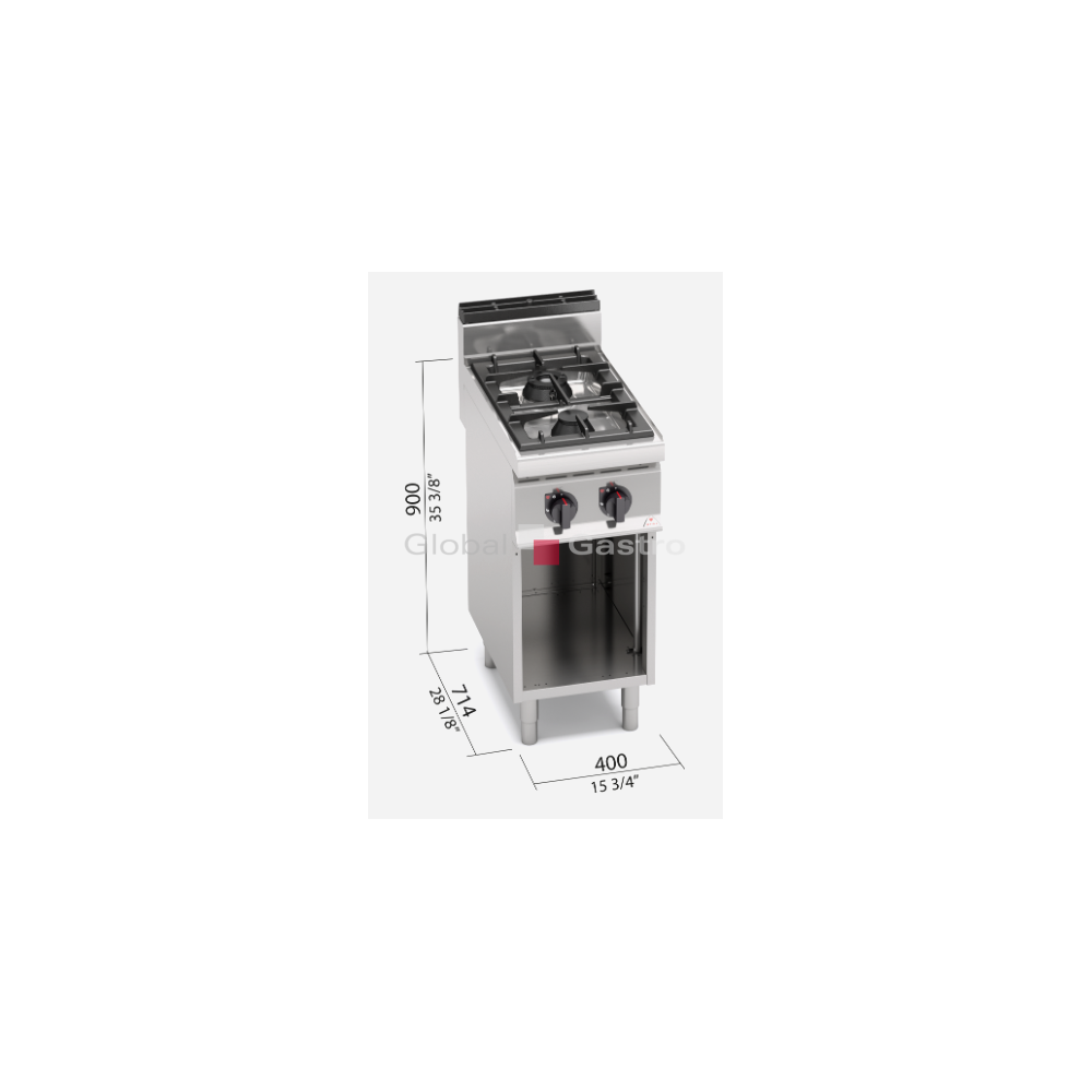 Pracovní plocha a opláštění z nerez oceli AISI 304. Výkonné litinové hořáky HIGH POWER, snadno demontovatelné a umístěné ve vyjímatelných prolisovaných smaltovaných (nerezových) odkapových vanách. Zapalování hořáků věčným plamínkem. Kompaktní provedení s otevřeným podstavcem.